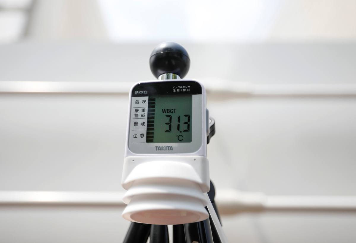 The WBGT device factors in temperature, humidity, wind speed and solar radiation, producing a rating based on the variables and the Tokyo Metropolitan Government (TMG) advise citizens against exercising when the WBGT rating is over 31.