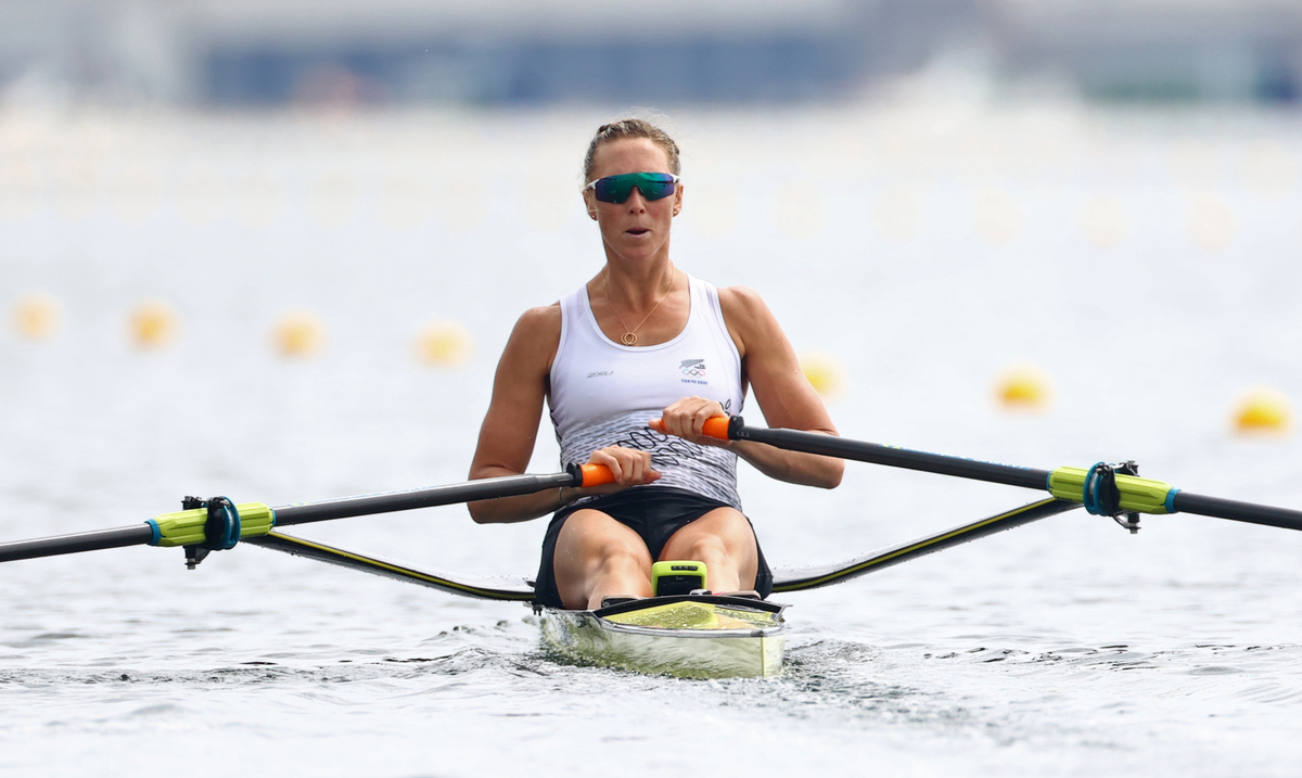 Tokyo 2020 Olympics - Rowing - Women's Single Sculls - Final A - Sea Forest Waterway, Tokyo, Japan - July 30, 2021. Emma Twigg of New Zealand in action REUTERS/Leah Millis