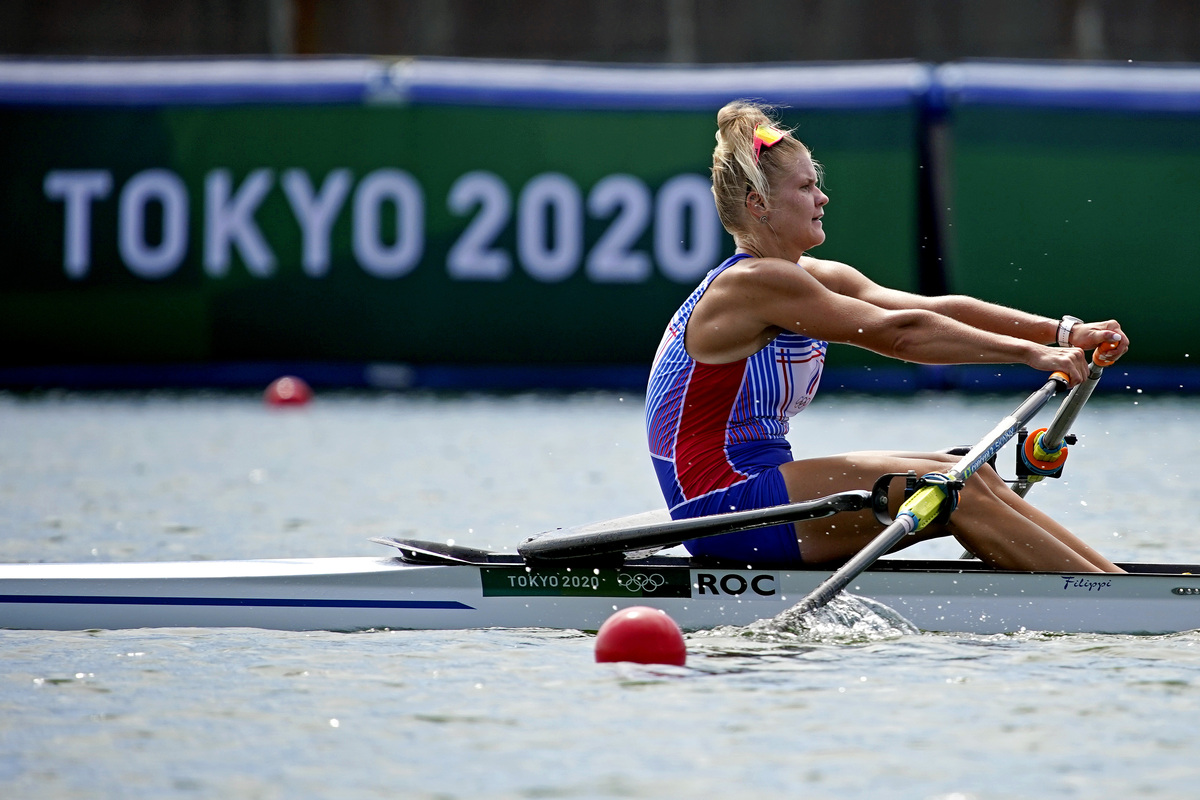FILE PHOTO: Jul 23, 2021; Tokyo, Japan; Hanna Prakatsen (ROC) competes in the Womens Single Sculls Heats during the Tokyo 2020 Olympic Summer Games at Sea Forest Waterway. Mandatory Credit: Andrew Nelles-USA TODAY Network