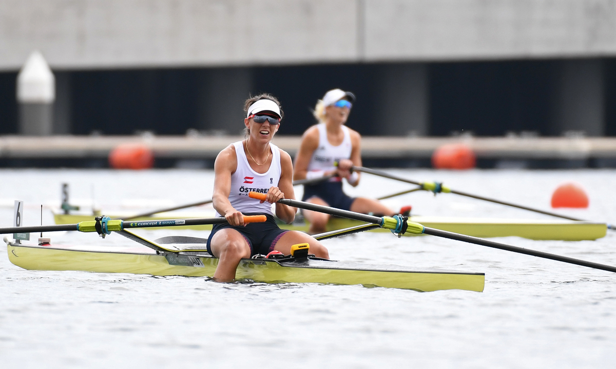 Tokyo 2020 Olympics - Rowing - Women's Single Sculls - Final A - Sea Forest Waterway, Tokyo, Japan - July 30, 2021. Magdalena Lobnig of Austria in action REUTERS/Piroschka Van De Wouw