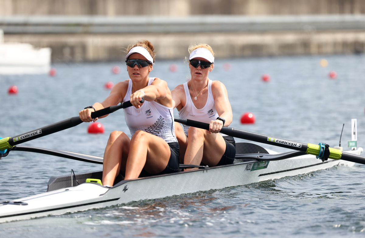 New Zealand won Olympic gold in the women's pair on Thursday at Tokyo's Sea Forest Waterway.