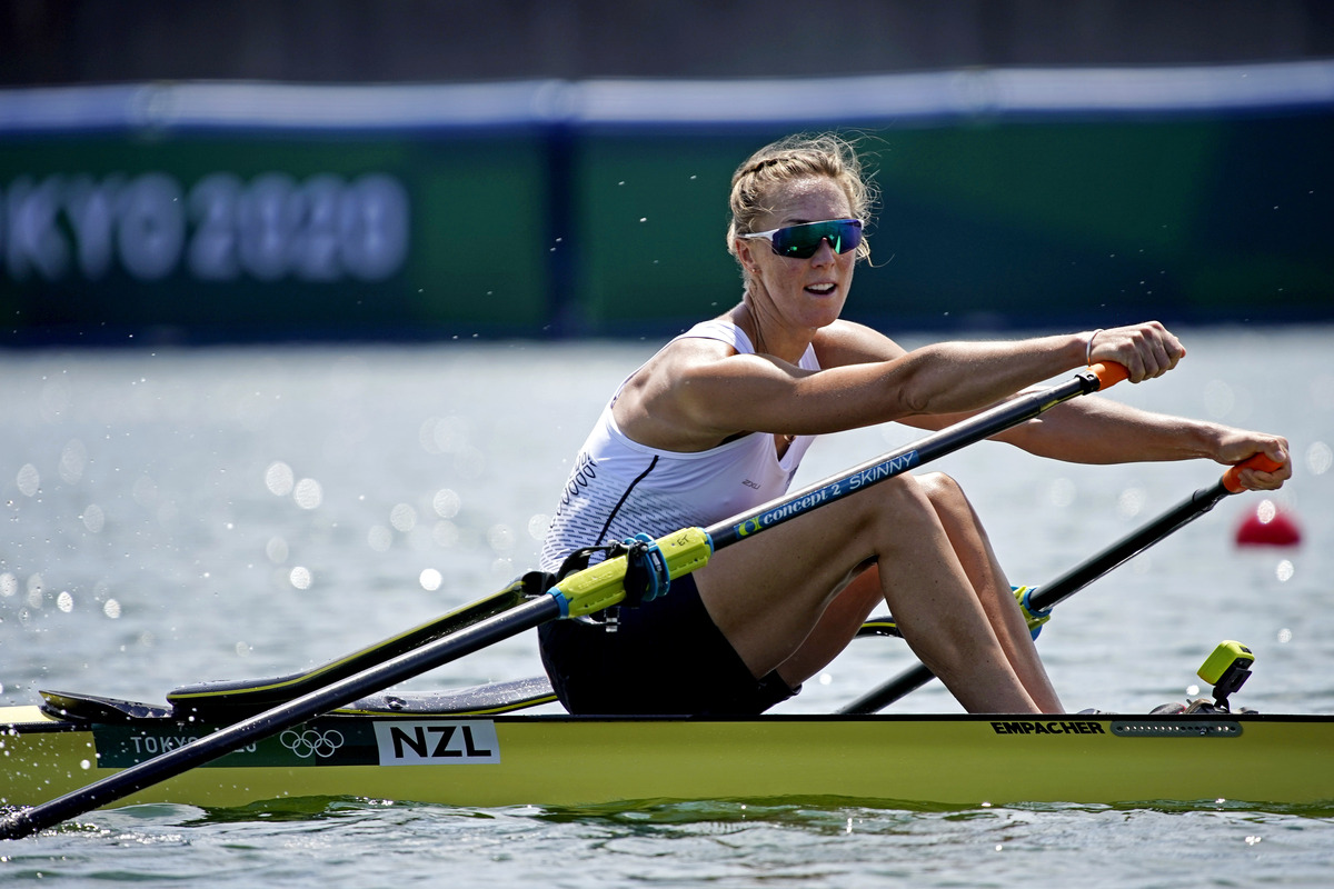 The 34-year-old New Zealander posted the fastest overall time of the women's opening heats in her first race since 2019, cruising through to a 7:35.22 finish at the fan-free venue after two heartbreaking fourth-place finishes at the London and Rio Games.