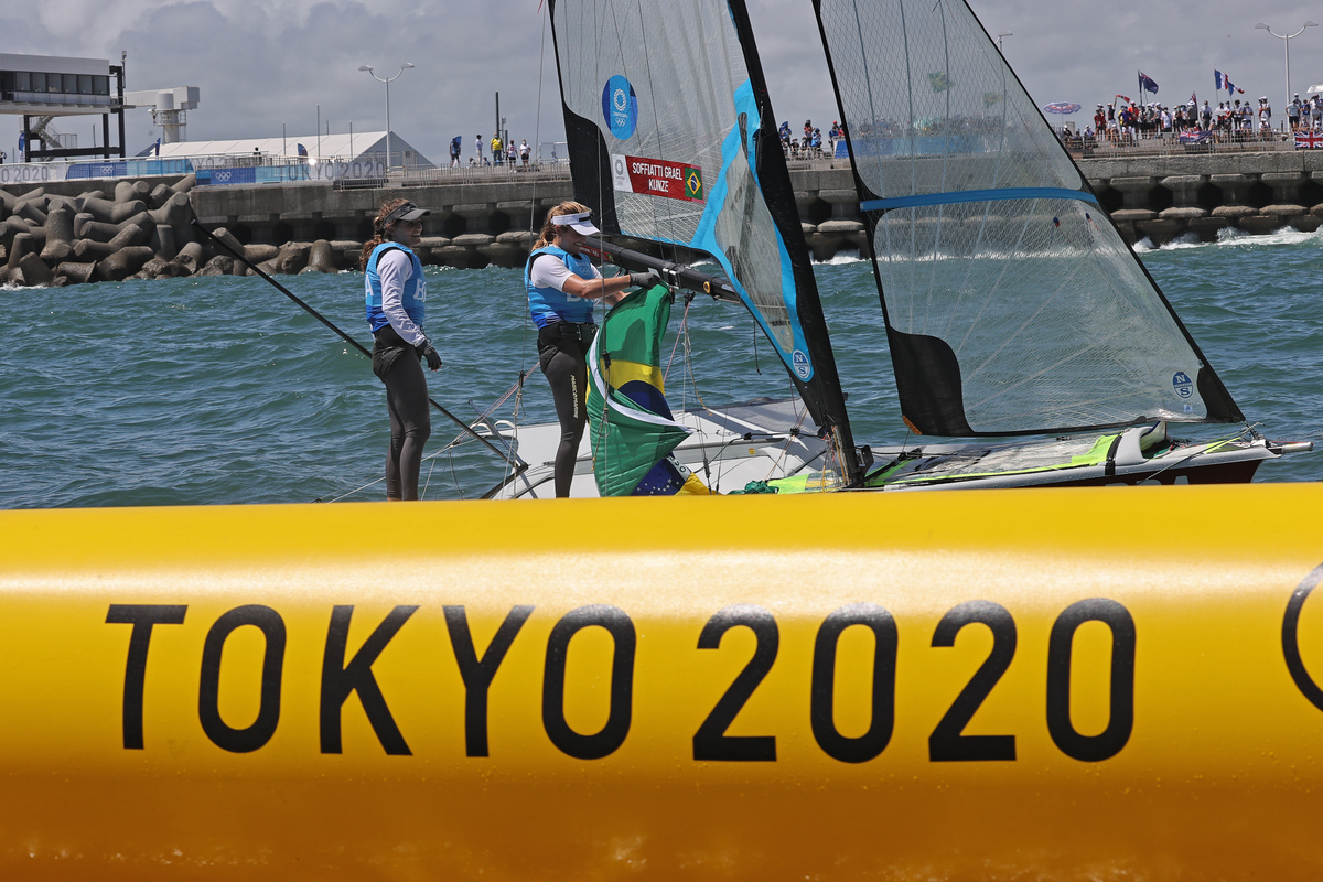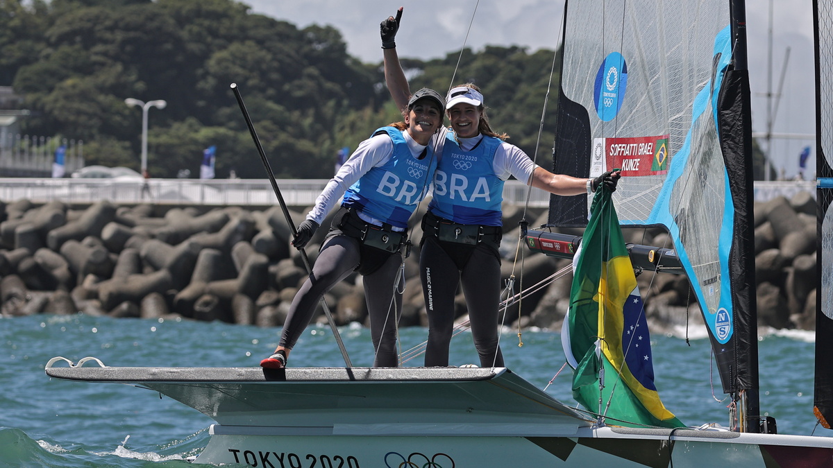 A brilliant performance in the medal race saw Martine Grael and Kahena Kunze win gold for Brazil in the women's 49er FX sailing event at the Enoshima Yacht Harbour on Tuesday.