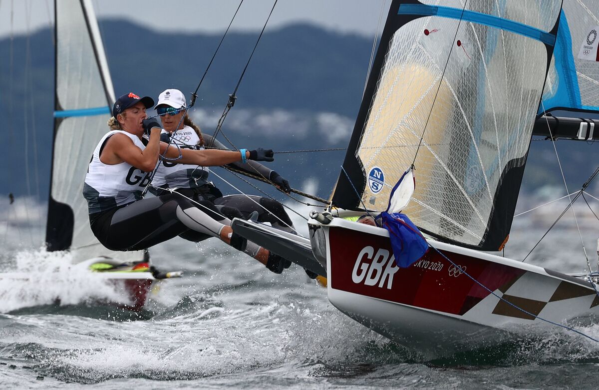 Britons Charlotte Dobson and Saskia Tidey got their Olympic challenge off to a strong start with two wins in their first three races in the 49er FX skiff class as the sailing events started at the Enoshima Yacht Harbour on Tuesday.