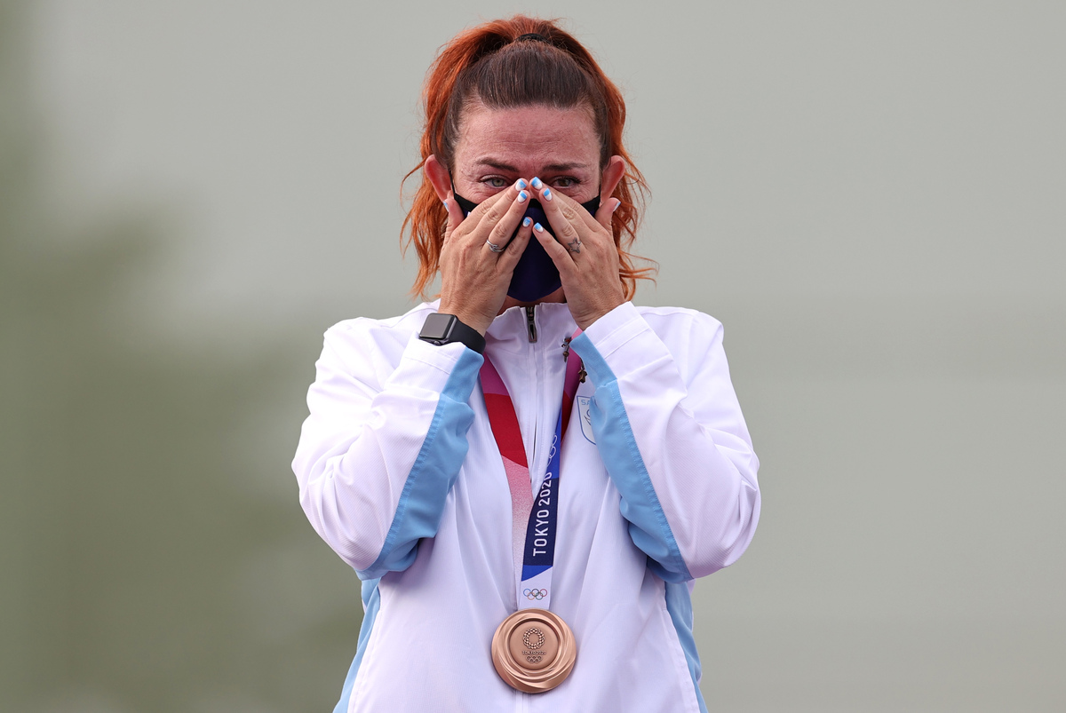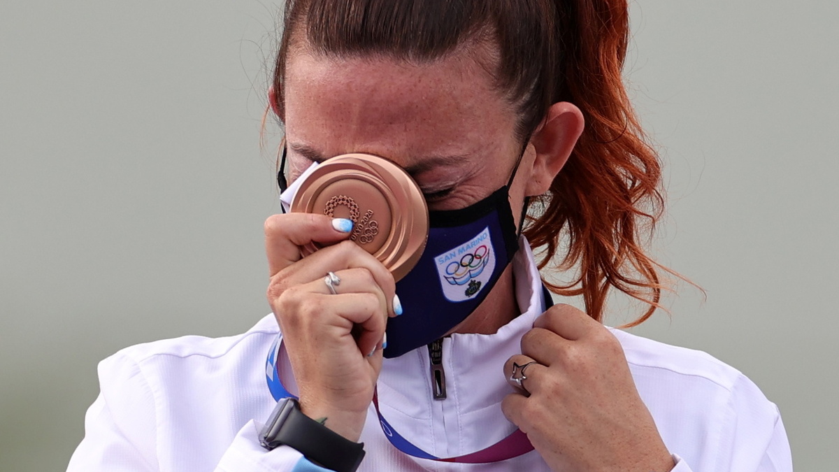 Alessandra Perilli clinched bronze in the women’s trap shooting, becoming the first person to win an Olympic medal for the microstate of around 34,000 inhabitants.