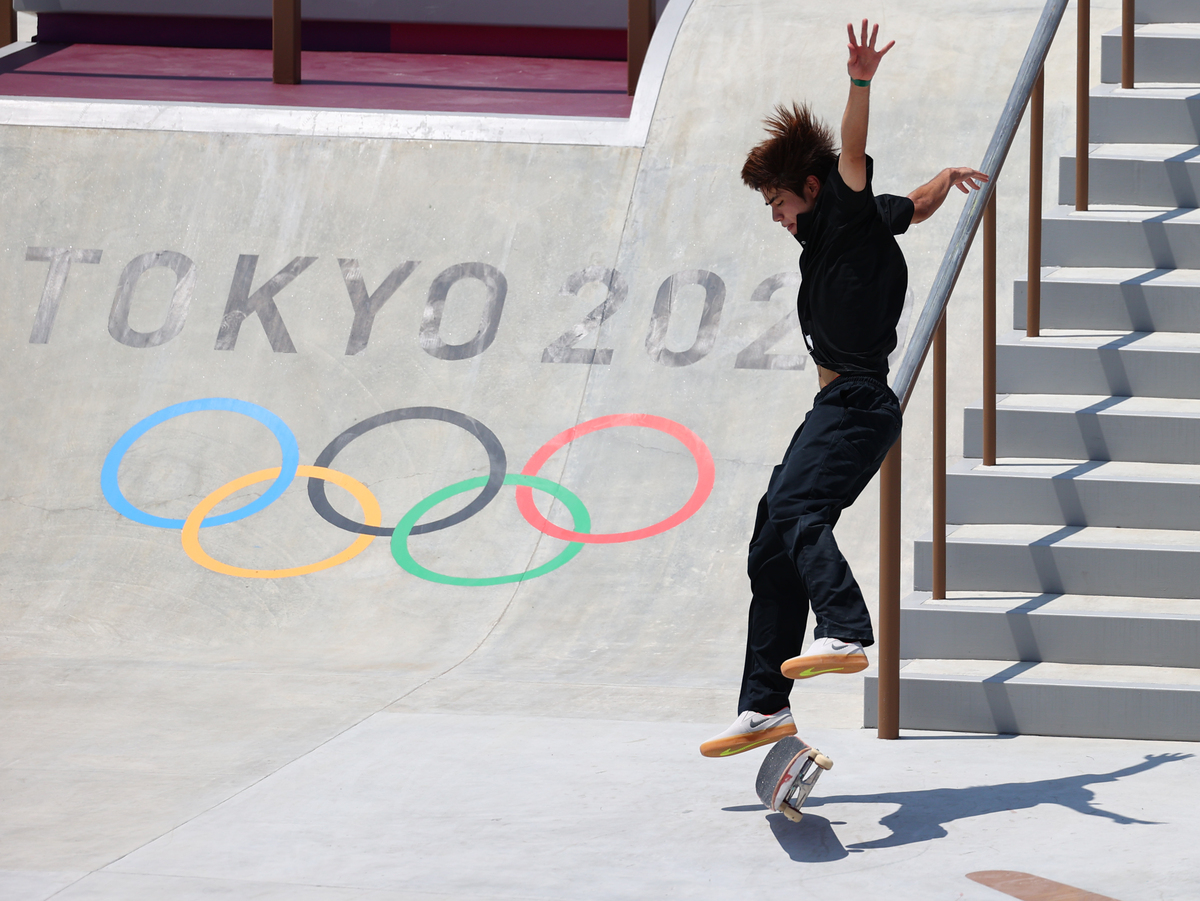 Many expect Huston and Tokyo's very own Horigome to come out on top, skating on a concrete course designed with rails and benches emblazoned with the five Olympic rings.