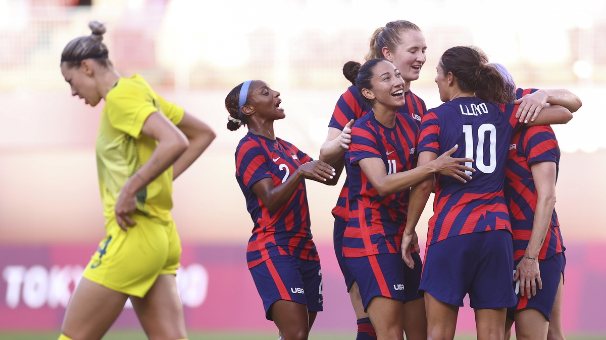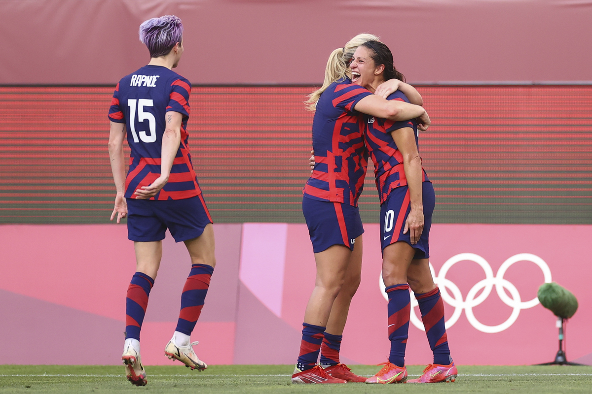 The United States women's team won the Olympics bronze medal with Megan Rapinoe and Carli Lloyd scoring two goals each in a 4-3 win over Australia in Kashima on Thursday.