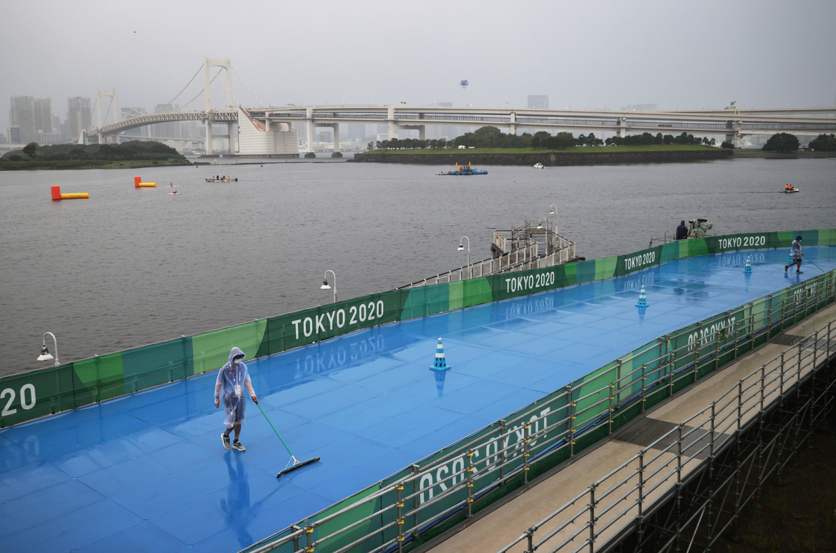 The storm had earlier disrupted the schedules of rowing, archery. The men's triathlon went ahead on Monday.