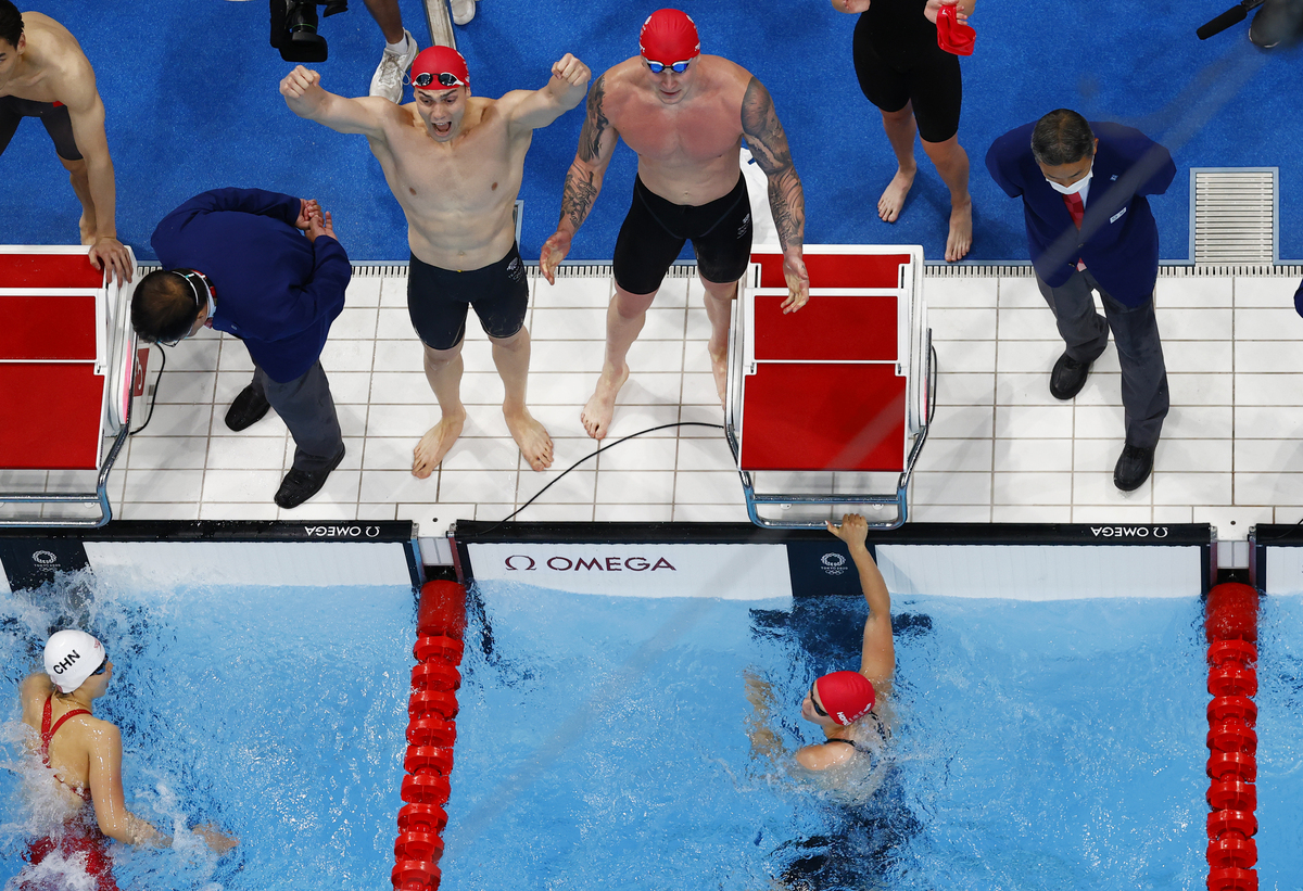 Britain won the gold medal in the mixed 4x100m medley relay in a world record time of three minutes 37.58 at the Tokyo Olympics on Saturday.