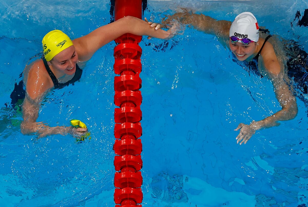 Tokyo 2020 Olympics - Swimming - Women's 200m Freestyle - Final - Tokyo Aquatics Centre - Tokyo, Japan - July 28, 2021. Ariarne Titmus of Australia reacts after winning REUTERS/Kai PfaffenbachTokyo 2020 Olympics - Swimming - Women's 200m Freestyle - Final - Tokyo Aquatics Centre - Tokyo, Japan - July 28, 2021. Ariarne Titmus of Australia reacts after after setting a new Olympic record to win the gold medal REUTERS/Marko DjuricaTokyo 2020 Olympics - Swimming - Women's 200m Freestyle - Final - Tokyo Aquatics Centre - Tokyo, Japan - July 28, 2021. Ariarne Titmus of Australia in action REUTERS/Kai PfaffenbachTokyo 2020 Olympics - Swimming - Women's 200m Freestyle - Final - Tokyo Aquatics Centre - Tokyo, Japan - July 28, 2021. Ariarne Titmus of Australia shakes hands with Kathleen Ledecky of the United States REUTERS/Antonio BronicTokyo 2020 Olympics - Swimming - Women's 200m Freestyle - Final - Tokyo Aquatics Centre - Tokyo, Japan - July 28, 2021. Ariarne Titmus of Australia and Siobhan Haughey of Hong Kong after the event REUTERS/Antonio Bronic