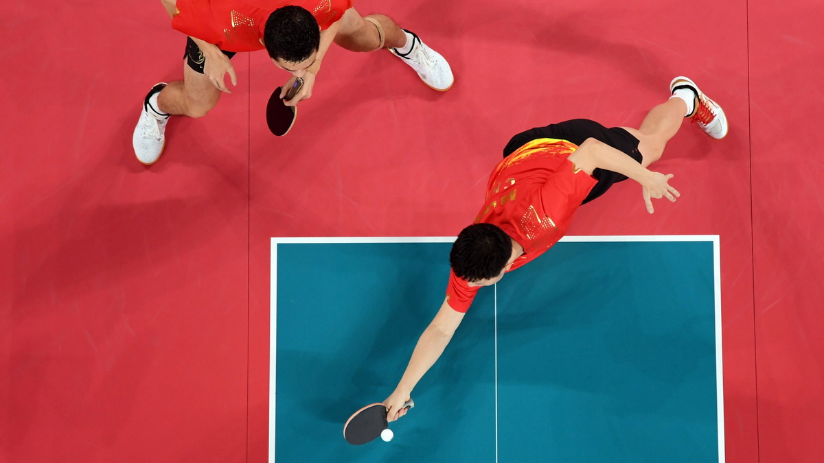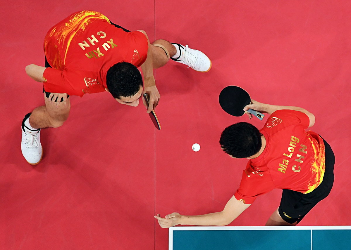 China's Ma Long and Xu Xin overcame French pair Alexandre Cassin and Emmanuel Lebesson 3-0 in the first doubles match.