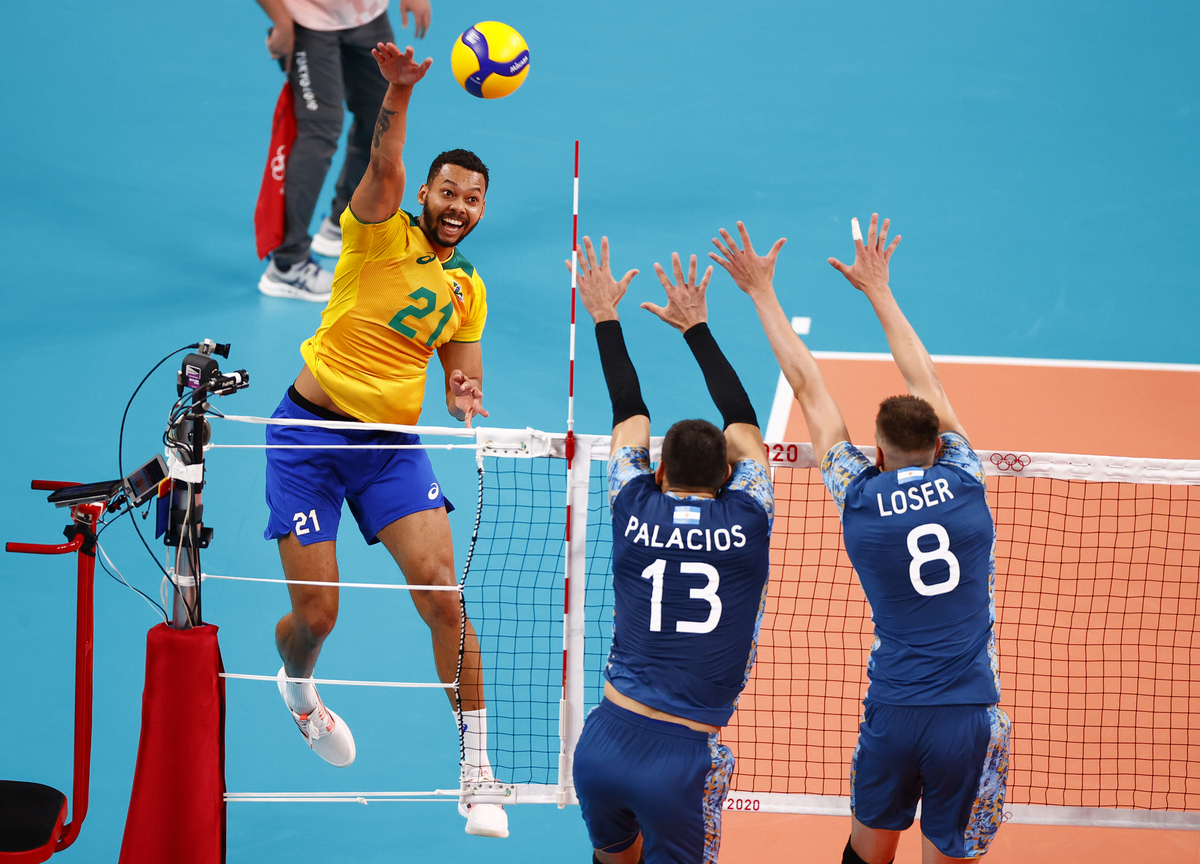 Argentina took the first two sets and looked well set for victory with a 17-11 lead in the fourth when Brazil stormed back into the contest with a series of blocks that rocked their South American rivals before forcing a decider.
