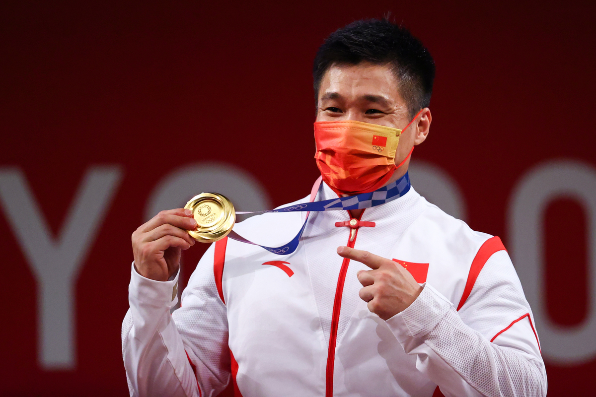 China's Lyu Xiaojun won a gold medal in the men's 81kg weightlifting competition at the Tokyo Olympics on Saturday but failed to break his own world record.