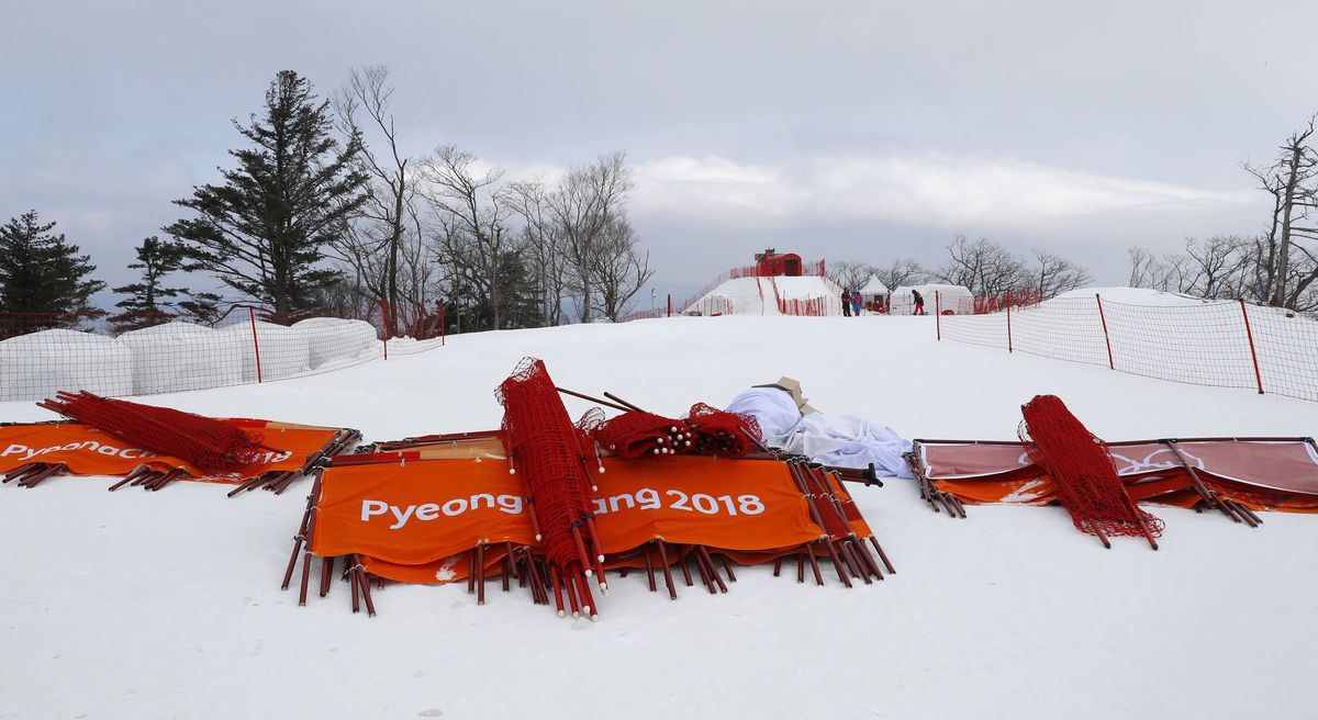 PYEONGCHANG, South Korea (Reuters) - The prospects of the men's Olympic downhill being run as scheduled looked slim on Sunday morning when the Jeongseon Alpine Centre was closed because of high winds a few hours before the scheduled start.