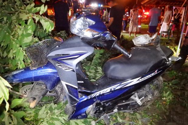 Pol Maj Samai Phuwong, the chief interrogator of the Ban Klang police station, said on Wednesday that Aree Abdullah, 62, died at the scene on when the motorcycle driven by his wife Chamaiporn Yodmai, 39, was hit in the rear by a car in Muang district.