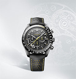 In this new creation, OMEGA has again embraced its popular “Dark Side of the Moon” innovation, producing the entire watch in black zirconium oxide ceramic. To contrast this dark tone, the brand has chosen for its colour coding, yellow which is closely associated with speed.
