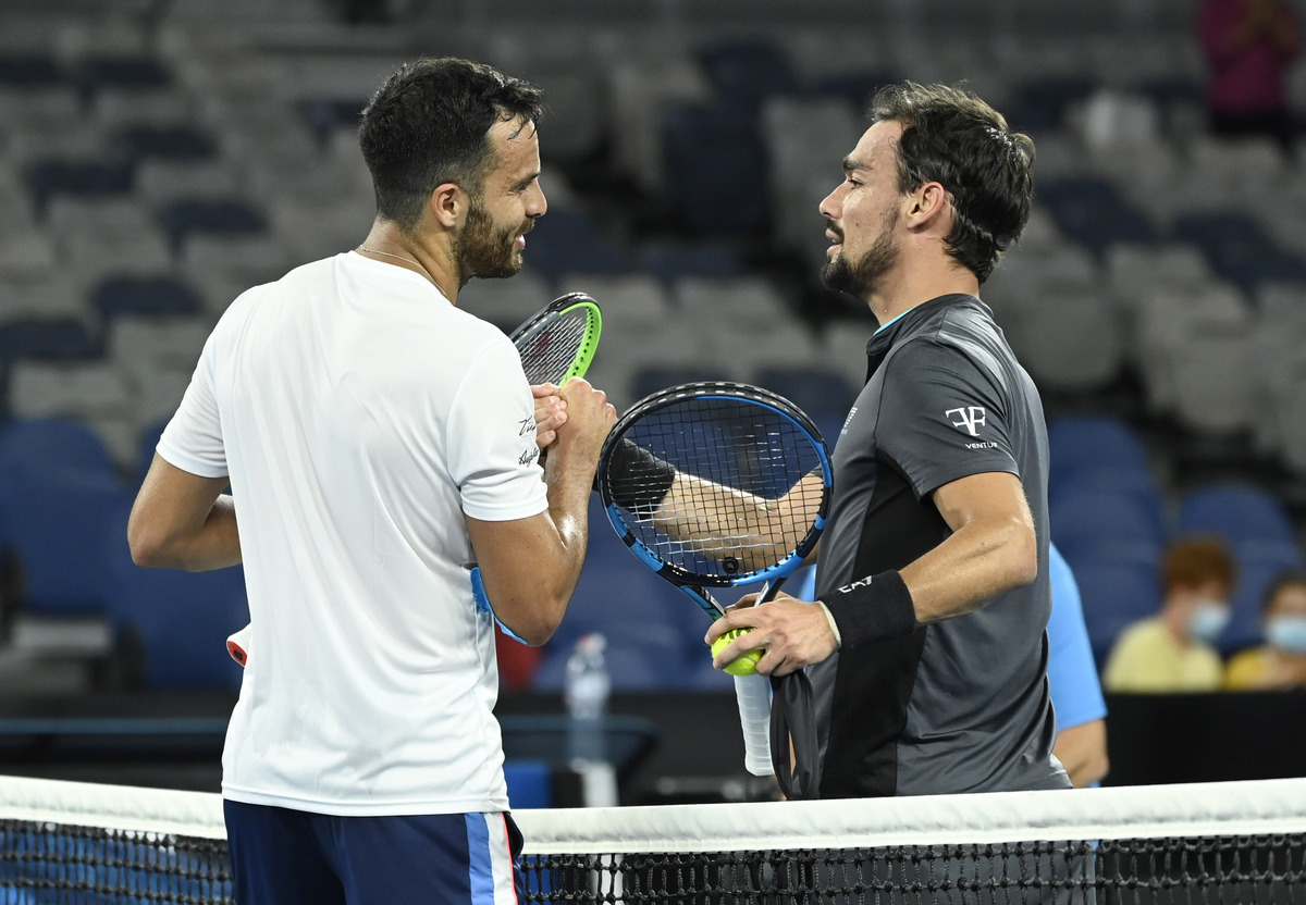 Fabio Fognini and Salvatore Caruso had to be separated by the court supervisor after the first all-Italian Australian Open men's singles match of the open era ended in uproar on Thursday.