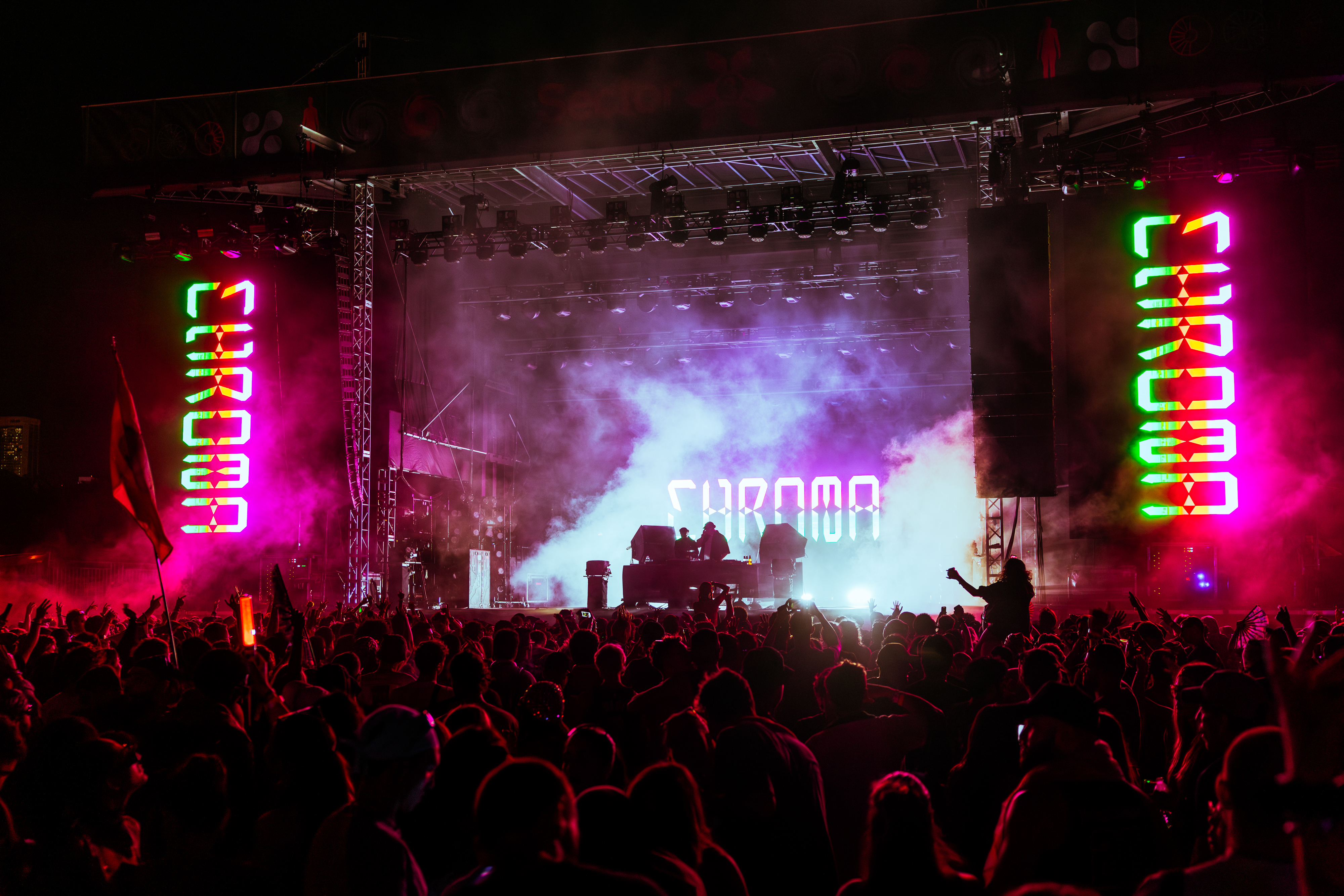 Launched in 2025, CHROMA is a multidisciplinary project that merges a record label and hybrid DJ/live audiovisual show with a striking visual language crafted alongside designer David Rudnick. Now collated into an 11-track LP, CHROMA 000, it finds the duo exploring darker, more underground club sounds that mirror their shifting musical tastes.