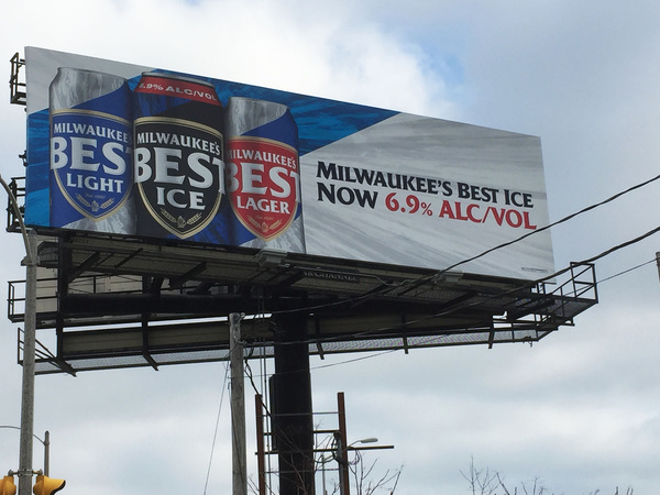 They announce in red letters, more than two feet high, that Milwaukee's Best Ice is now "6.9 percent ALC/VOL."