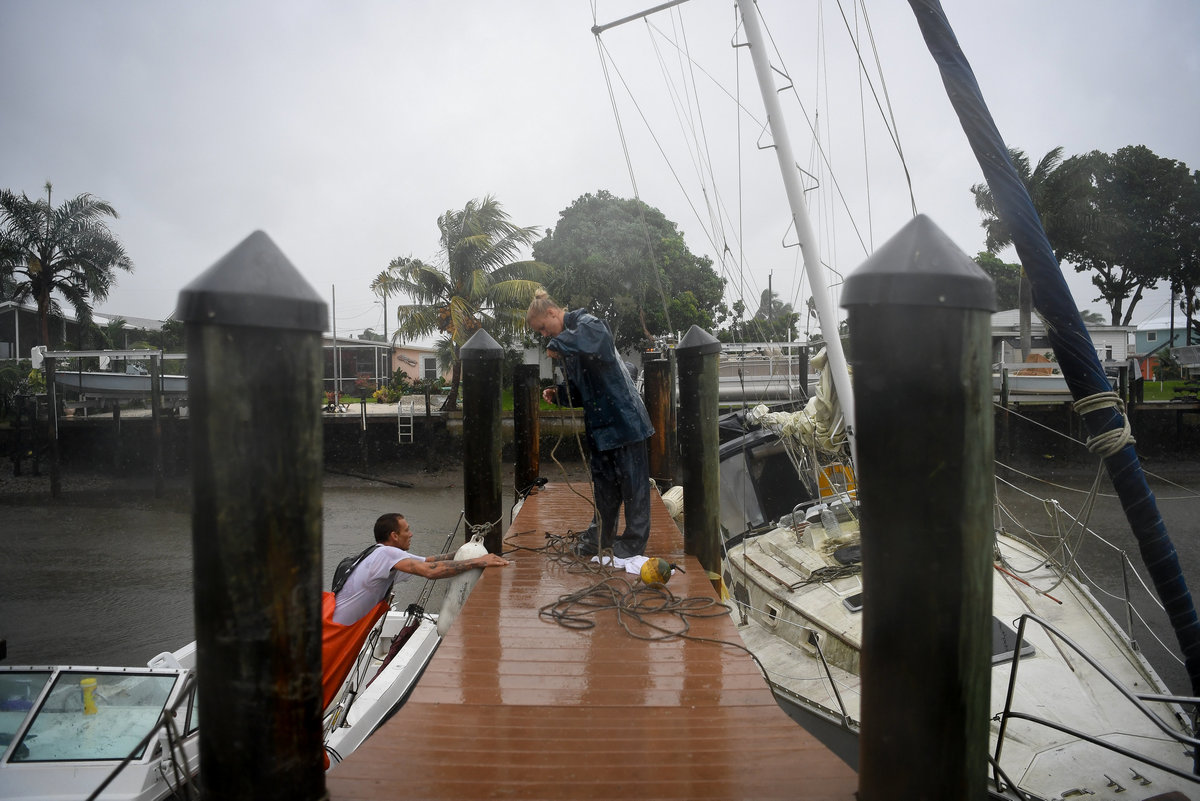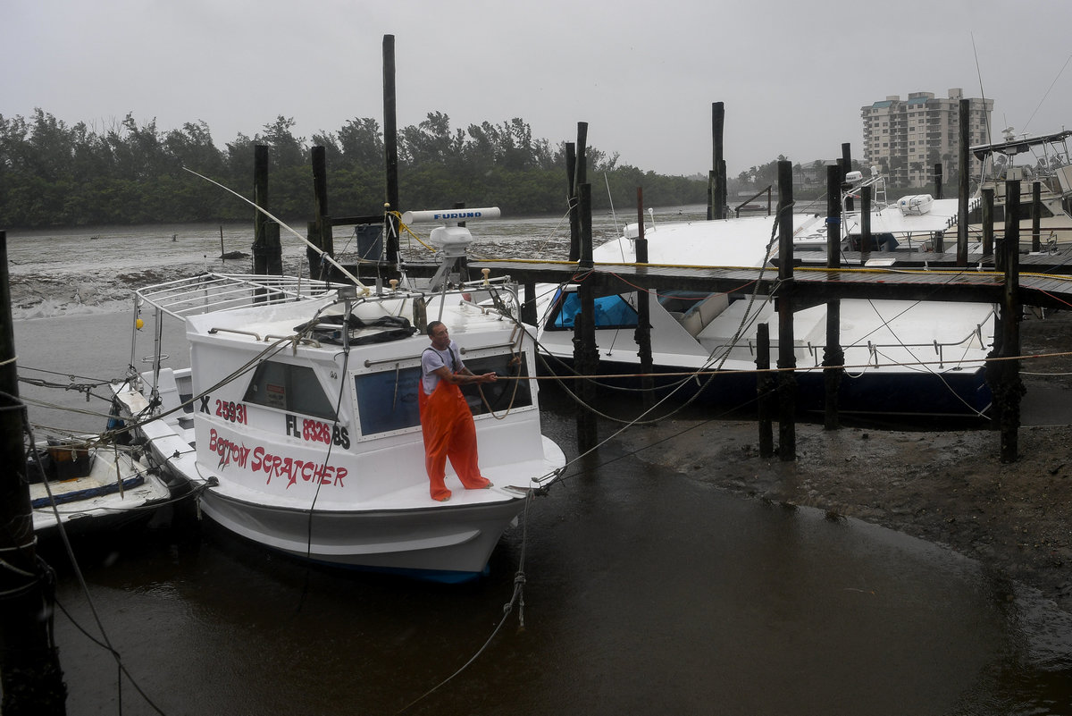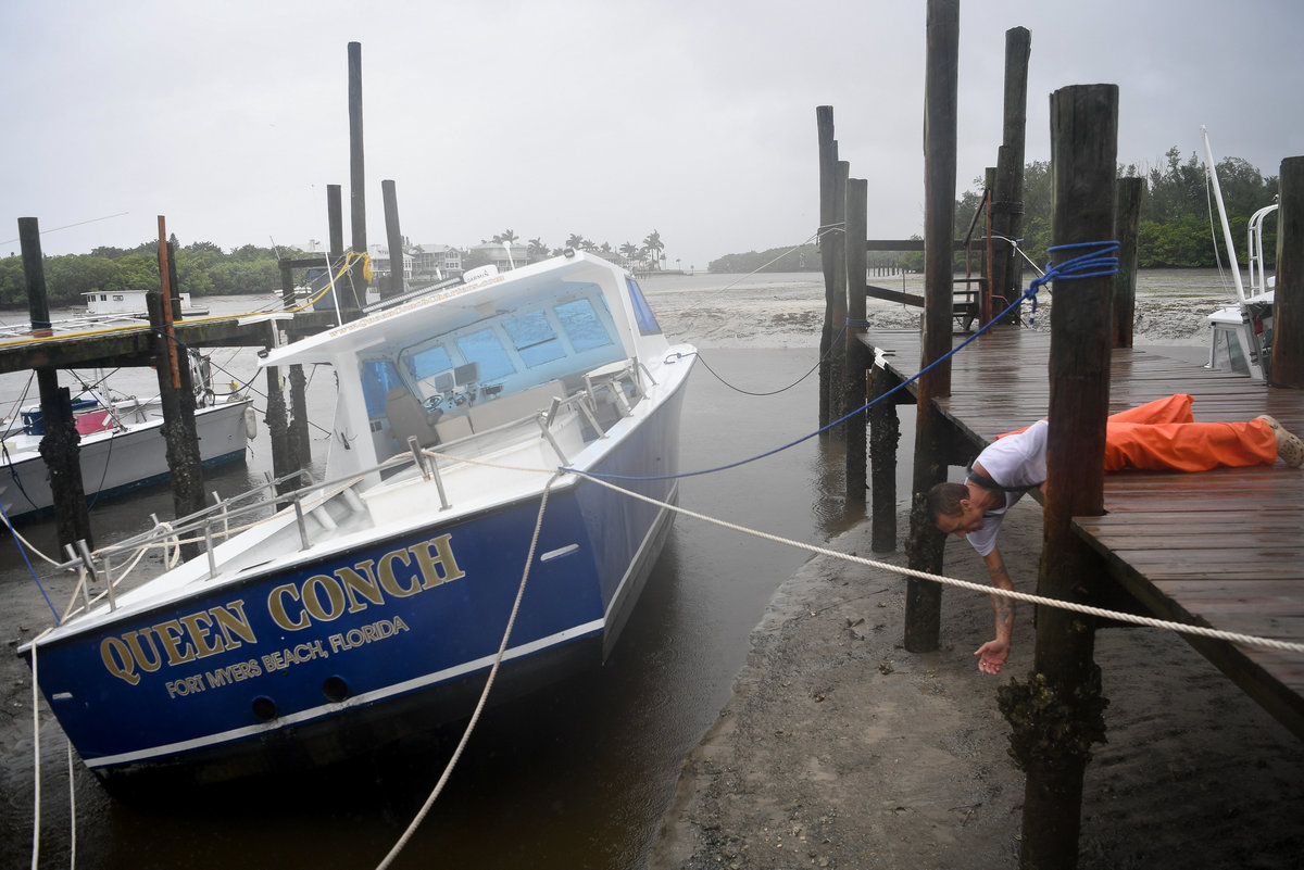 FORT MYERS BEACH, Fla. (Reuters) - As the winds started to roar in Hurricane Bay, P.J. Pike jumped from a high dock down to his fishing boat and began lashing ropes to the mast.