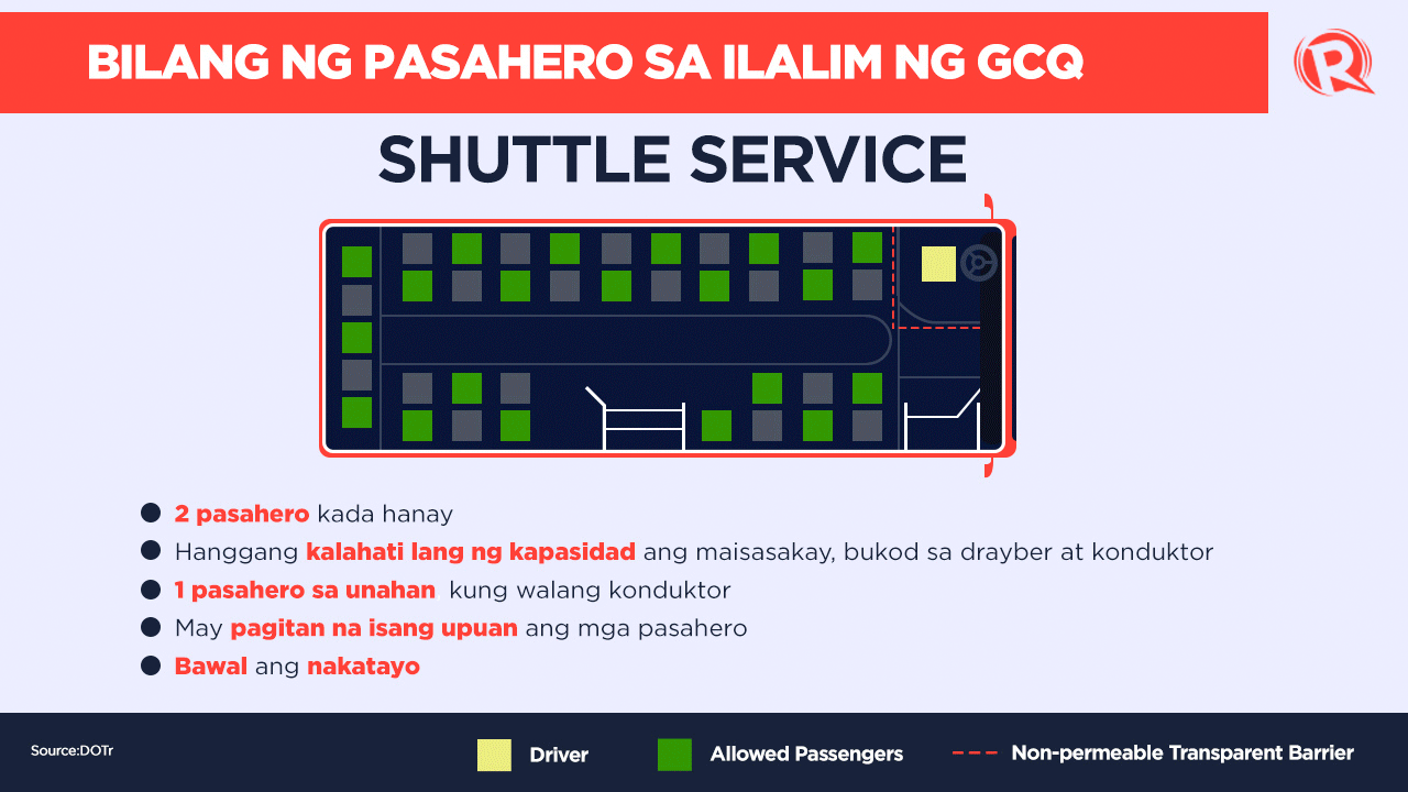 All of these modes will implement reduced capacity, cashless payments, and health protocols such as wearing of face masks, disinfection of vehicles, availability of sanitizers, and use of thermal scanners.