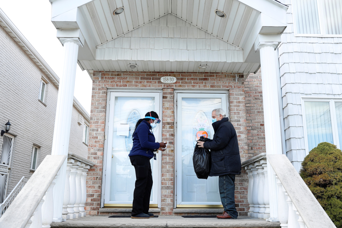 Clutching a bottle of hand sanitizer and with her loose blue gown flapping in the wind, Ajayi climbed the porch steps and rang the bell to a door with a bunny-shaped sign that read “Happy Easter!”