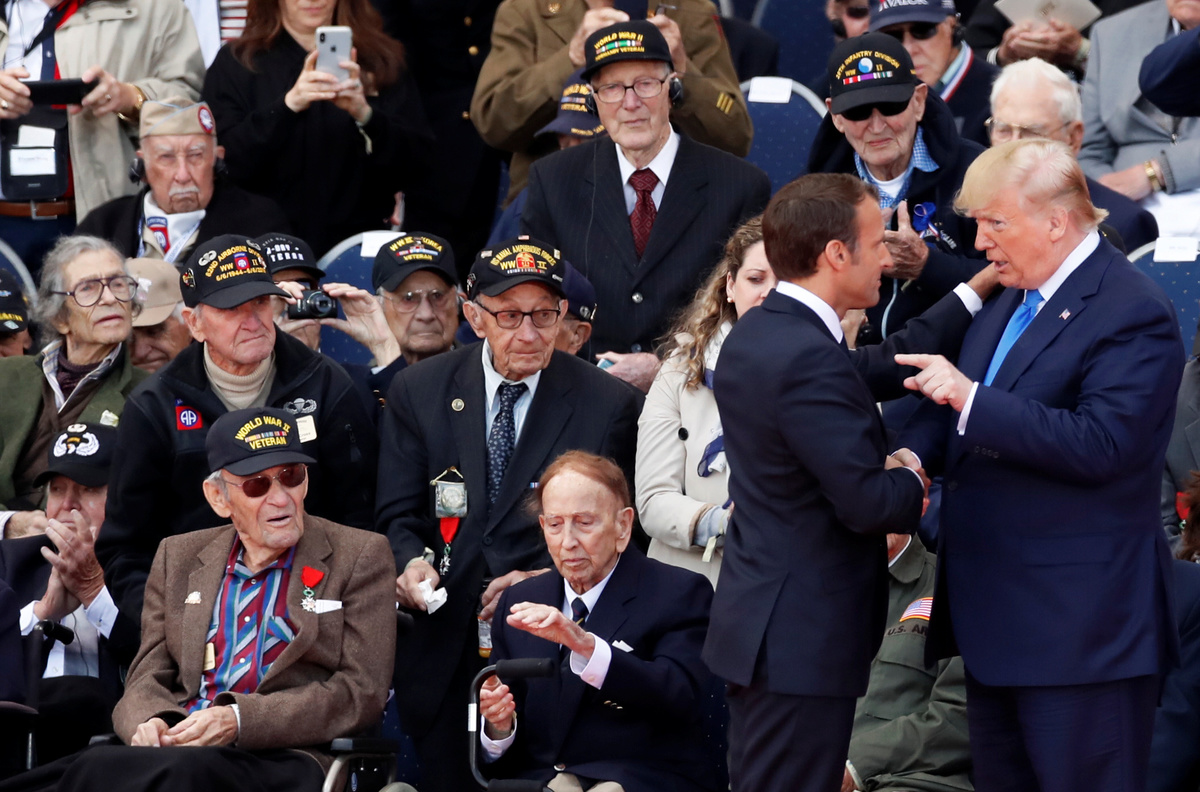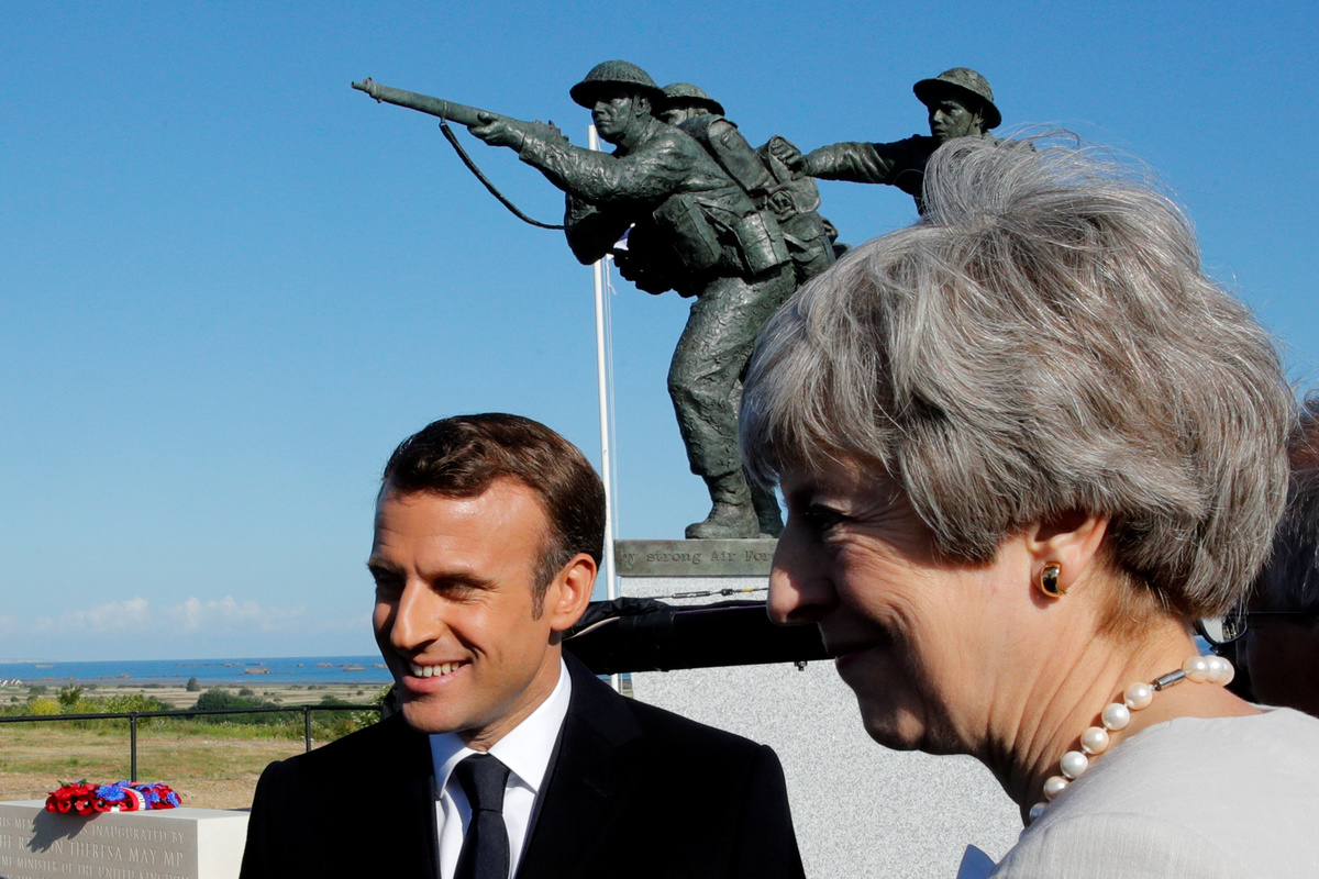 U.S. President Donald Trump and British Prime Minister Theresa May joined Macron at separate ceremonies along a 80km (50 mile) stretch of Normandy coastline, where more than 150,000 soldiers landed on June 6, 1944, under a hail of German fire.