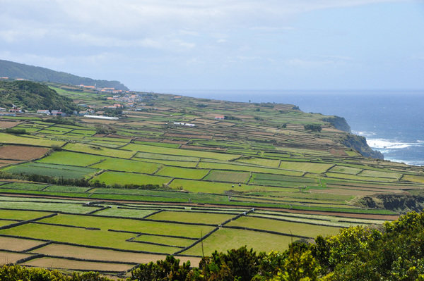 I see the island as she does: the spectacular rocky vistas; the quaint villages; the fresh swordfish and octopus; the patchwork patterns of fields separated by stone walls. I marvel at the volcanic pools next to crashing surf where Murphy _ the beloved dog whom she drove all the way across the United States so she could fly him to Terceira from Boston _ rollicks and romps with snorts of canine joy.