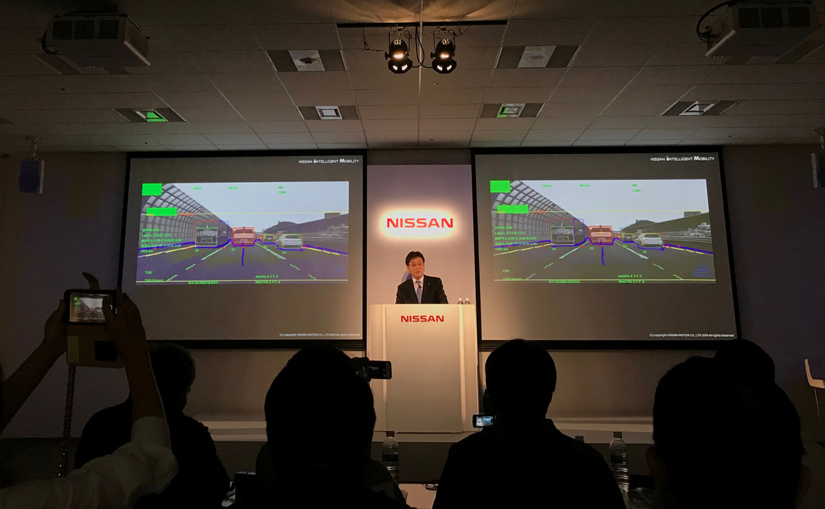 Iijima unveiled Nissan's own latest self-driving technology, which enables hands-free driving in single lanes on highways on predefined routes.