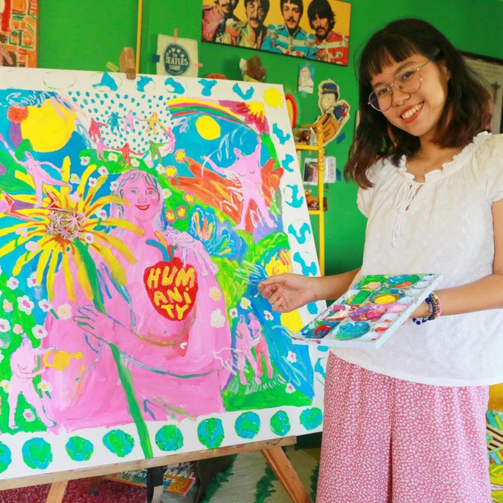 I have always loved doing colourful art since forever, that's who I am, I can't change that. Also, I believe there are various tones of voice we can use to talk about these depressing messages. The dictatorship wants us to lose hope and faith so that they can control us easier, it's very important for all of us to always stay hopeful. I wish that people can see this hope in my art!