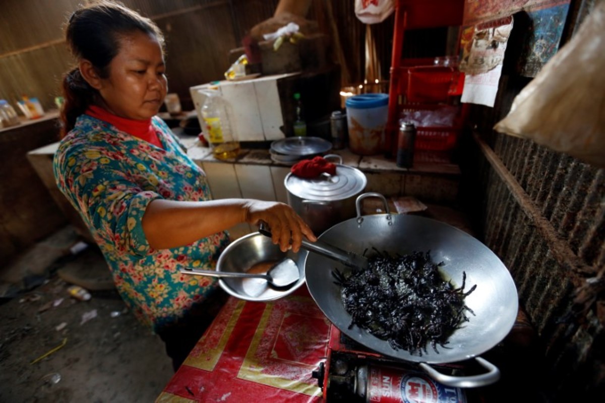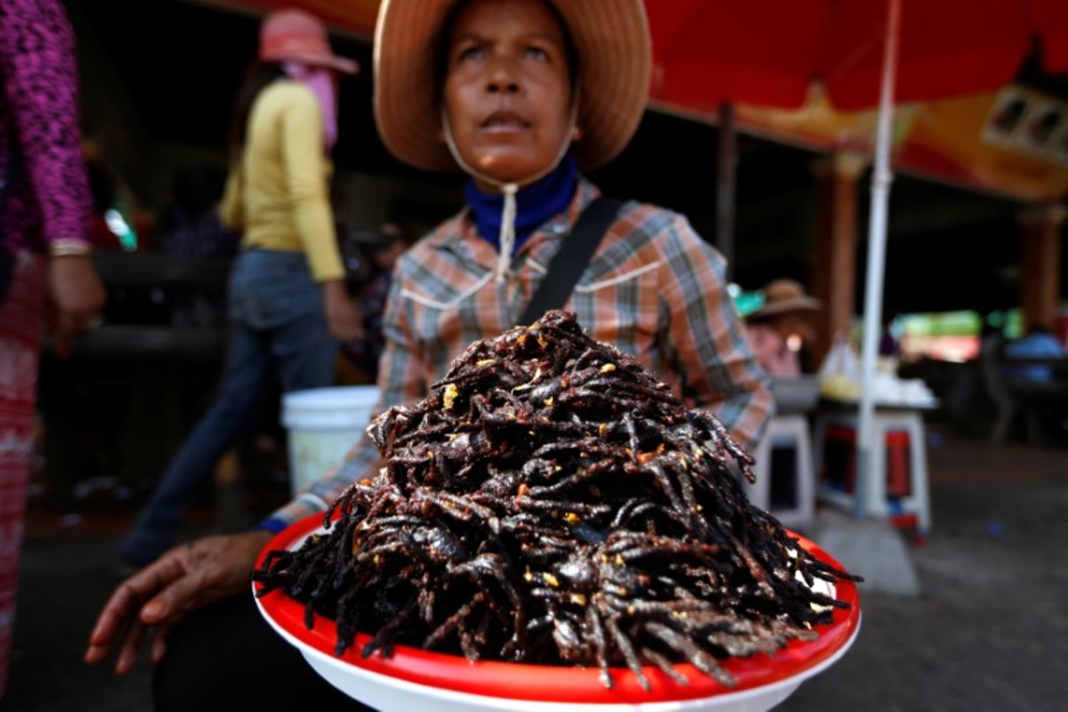 The market town of Skuon, 70 km (43 miles) north of Phnom Penh, is home to Cambodia's biggest spider market and business is booming.