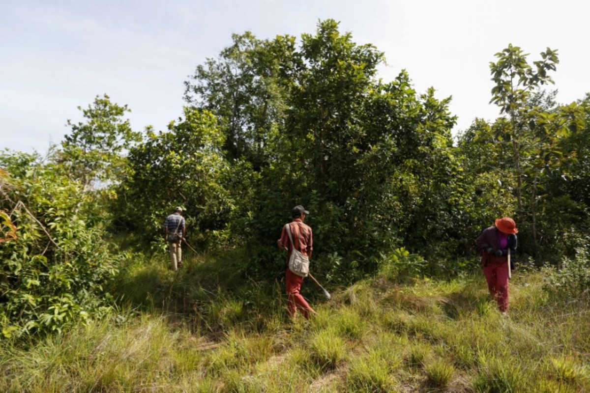In Krasaing village, hunters set off for their trip armed with hoes to dig for tarantulas, or "aping" in Khmer.