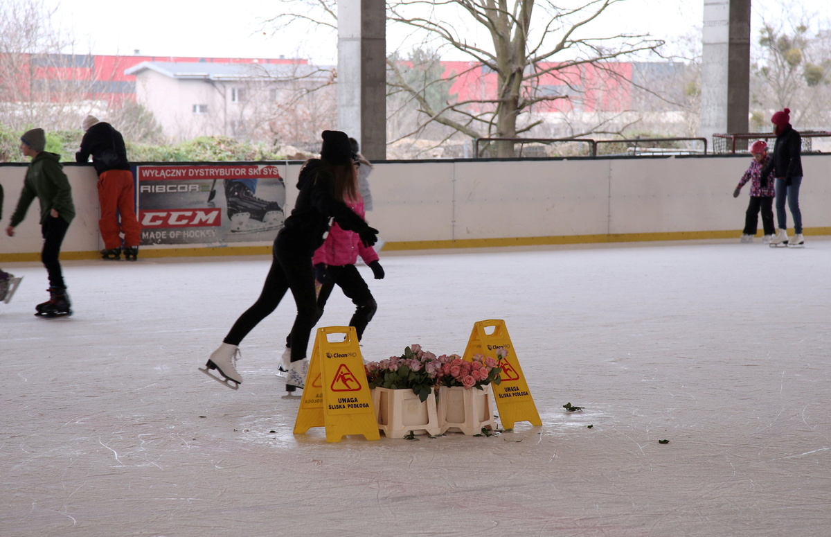 "You can jump, crawl or go on all fours ... you don't have to wear skates," Tomasz Fornalski, owner of the Lodogryf skating rink, told broadcaster TVN, which showed skaters holding pink roses as they circled the rink.