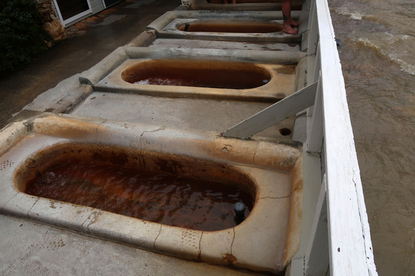 After settling into my classic room, I headed into the inky night to find the baths. A row of clay tubs lay beside a raging rain-engorged creek, looking every bit of their 155 years old. I stepped into a bath and filled it with warm water. On a Sunday night in January, the place was utterly deserted.