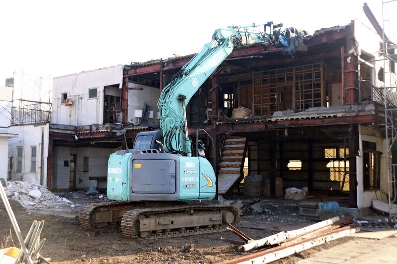 OTSUCHI, Iwate -- Demolition work began Monday at a former guesthouse in Otsuchi, Iwate Prefecture, that became widely known for the large ship that once rested atop it following the 2011 Great East Japan Earthquake and subsequent tsunami.
