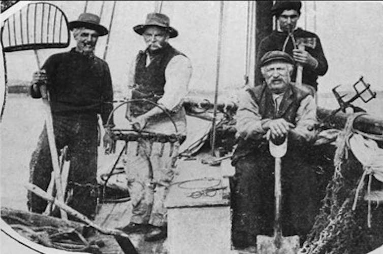 This ended as Europeans took the lands and waters from Traditional Owners. Shellfish became one of colonial Australia’s first fisheries. Oysters were fished extensively for food, while their shells were burnt to manufacture lime for fertiliser and cement. If you walk past a colonial-era building, look at the mortar. Chances are, a lot of oyster shells went into it.