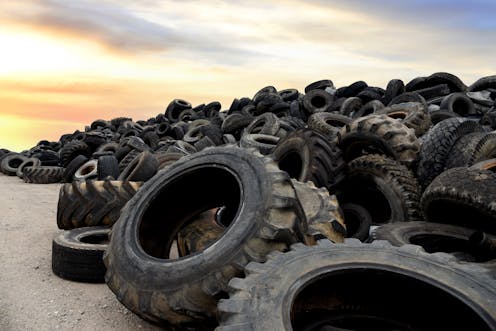 Many materials can be melted and reset in new forms once they have been separated and cleaned. Not rubber. To make tyres and other products, rubber must be chemically treated in a process known as curing or vulcanisation. This produces a material that is resistant to chemicals and heat – and difficult to recycle.