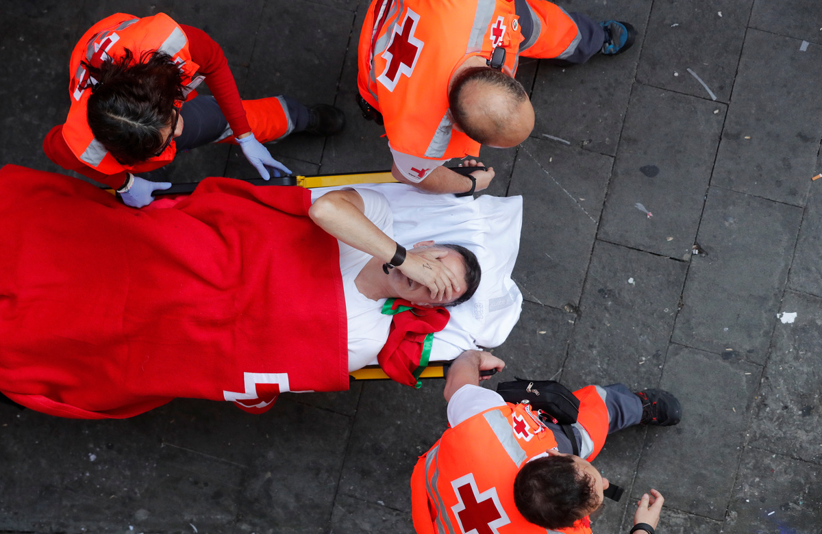 The Red Cross said 67 people were treated after the latest run in the northern Spanish city of Pamplona, most for minor cuts and bruises but seven requiring hospital.
