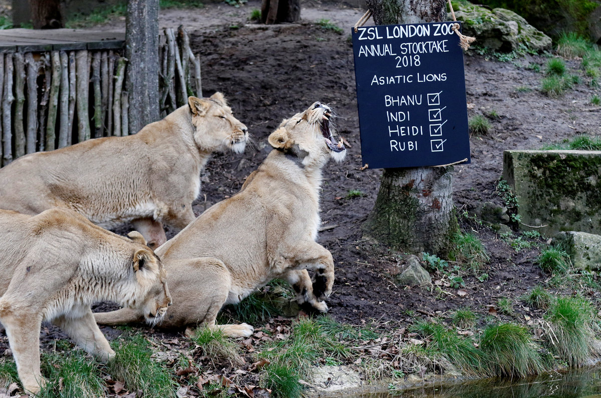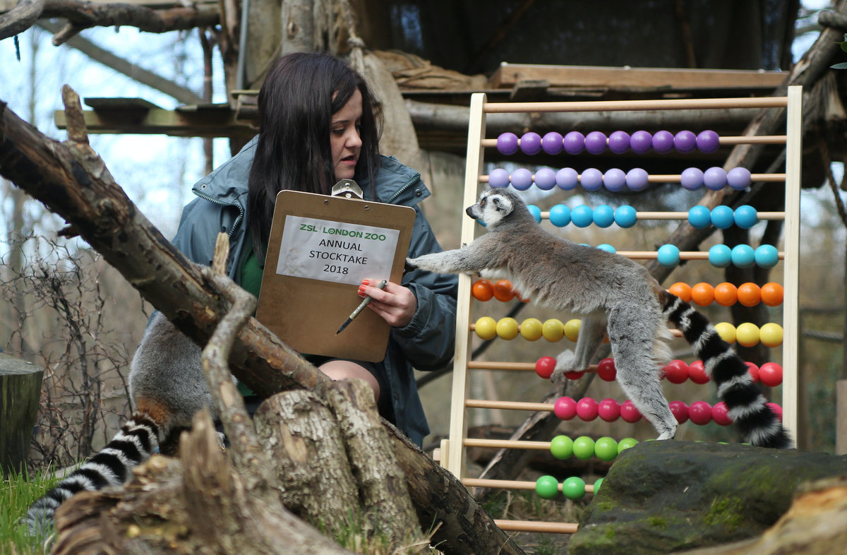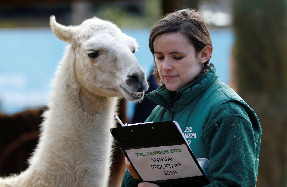 A keeper stands next to a llama during the Annual Stocktake at ZSL London Zoo in London, Britain February 7, 2018. REUTERS/Tom JacobsLemurs are counted during the Annual Stocktake at ZSL London Zoo in London, Britain. REUTERS/Tom JacobsSquirrel monkeys sit on a placard during the Annual Stocktake at ZSL London Zoo in London, Britain February 7, 2018. REUTERS/Tom JacobsA squirrel monkeys sits on a placard during the Annual Stocktake at ZSL London Zoo in London, Britain February 7, 2018. REUTERS/Tom JacobsA keeper stands next to llamas during the Annual Stocktake at ZSL London Zoo in London, Britain February 7, 2018. REUTERS/Tom JacobsLemurs are counted during the Annual Stocktake at ZSL London Zoo in London, Britain February 7, 2018. REUTERS/Tom JacobsPenguins look on during the Annual Stocktake at ZSL London Zoo in London, Britain February 7, 2018. REUTERS/Tom JacobsA Lemur eats a carrot infont of a giant abacus during the Annual Stocktake at ZSL London Zoo in London, Britain February 7, 2018. REUTERS/Tom JacobsJellyfish are counted during the Annual Stocktake at ZSL London Zoo in London, Britain February 7, 2018. REUTERS/Tom JacobsA worker poses next to the penguins enclosure during the Annual Stocktake at ZSL London Zoo in London, Britain February 7, 2018. REUTERS/Tom JacobsPenguins are counted during the Annual Stocktake at ZSL London Zoo in London, Britain February 7, 2018. REUTERS/Tom JacobsA worker poses next to a spiider during the Annual Stocktake at ZSL London Zoo in London, Britain February 7, 2018. REUTERS/Tom Jacobs