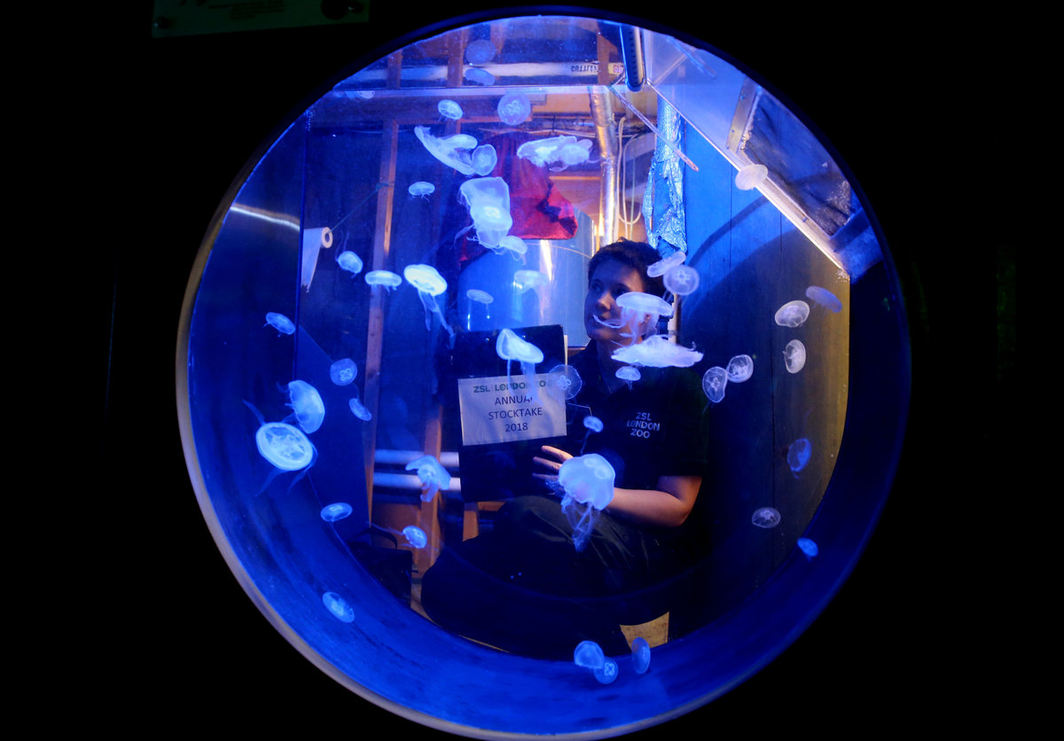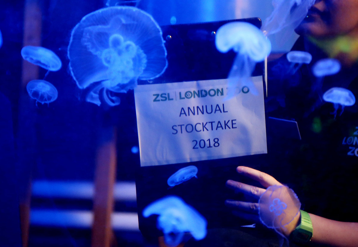 Jellyfish are counted during the Annual Stocktake at ZSL London Zoo in London, Britain February 7, 2018. REUTERS/Tom Jacobs