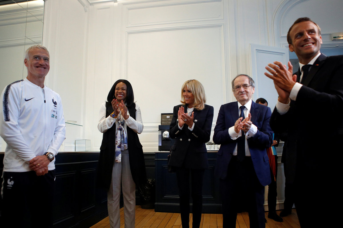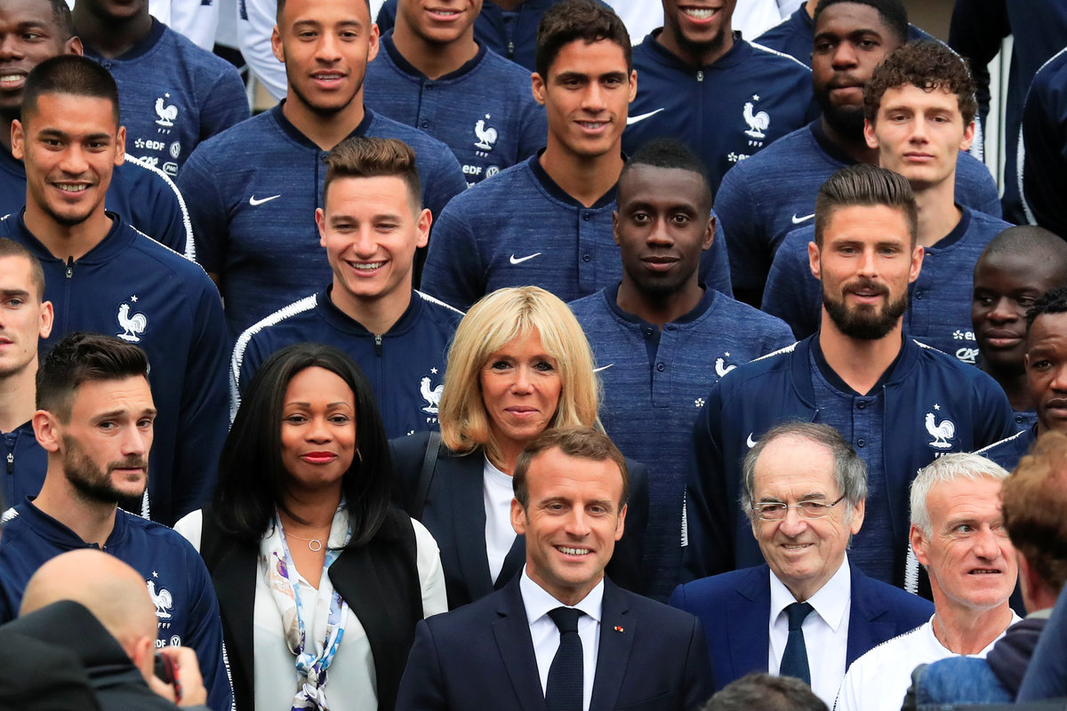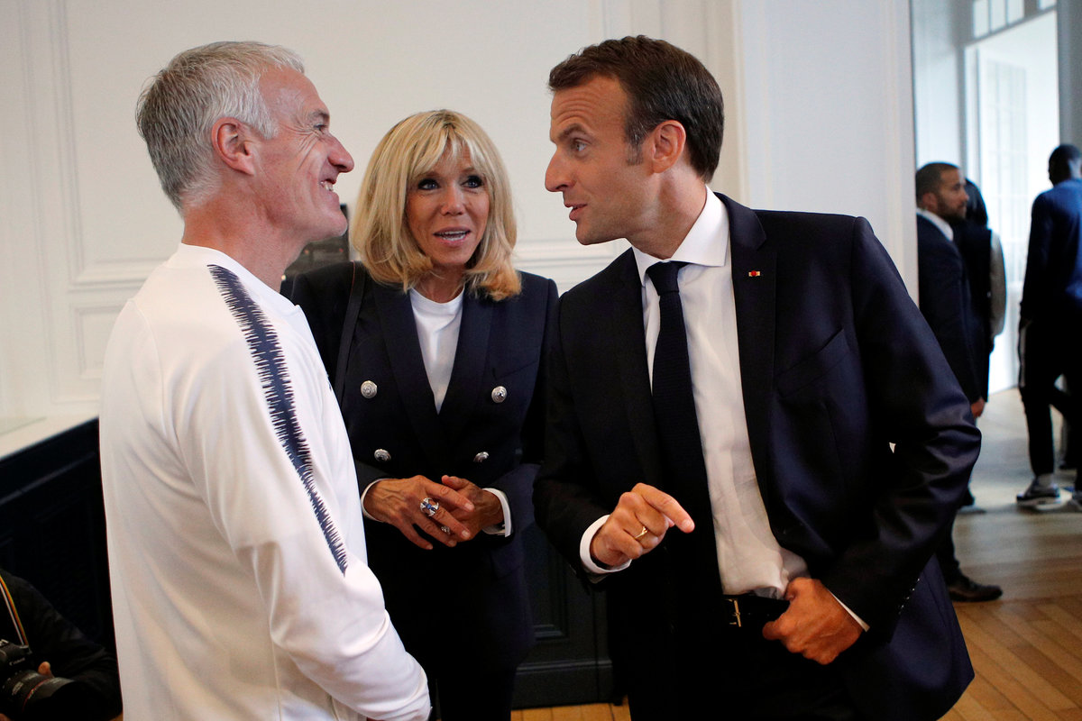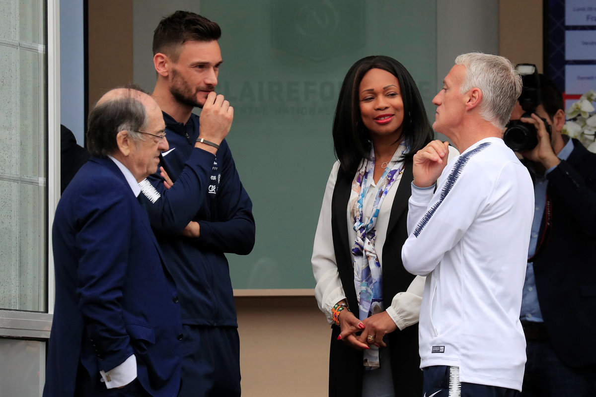 France coach Didier Deschamps, Hugo Lloris, French Sports Minister Laura Flessel and French Football Federation President Noel Le Graet wait for the arrival of French President Emmanuel Macron at the French national football team training center in Clairefontaine near Paris, France, June 5, 2018 prior to the national team's participation to the 2018 FIFA World Cup Russia. REUTERS/Gonzalo FuentesFrench President Emmanuel Macron (C) and his wife, Brigitte Macron, pose for a group photo with the French national soccer team upon their arrival for lunch at France's training camp in Clairefontaine, near Paris, France, June 5, 2018 prior to the national team's participation to the 2018 FIFA World Cup Russia. Francois Mori/Pool via ReutersFrench national soccer team head coach Didier Deschamps waits for the arrival of French President Emmanuel Macron (not pictured) during a meeting at France's training camp in Clairefontaine, near Paris, France, June 5, 2018 prior to the national team's participation to the 2018 FIFA World Cup Russia. Francois Mori/Pool via Reuters?Brigitte Macron, the wife of French President Emmanuel Macron pose with France coach Didier Deschamps, French Sports Minister Laura Flessel and French Football Federation President Noel Le Graet at the French national football team training center in Clairefontaine near Paris, France, June 5, 2018 prior to the national team's participation to the 2018 FIFA World Cup Russia. REUTERS/Gonzalo FuentesFrench President Emmanuel Macron (R), acknowledges applause with French national soccer team players during a meeting at France's training camp in Clairefontaine, near Paris, France, June 5, 2018. Standing with Macron, from left to right, head coach Didier Deschamps, French minister of sport, Laura Flessel, Brigitte Macron and French Football Federation President Noel Le Graet. Francois Mori/Pool via ReutersMacron speaks to the French national soccer team players, as goalkeeper Hugo Lloris (L), his wife, Brigitte Macron (2ndR) and head coach Didier Deschamps (R) look on during a meeting at France's training camp in Clairefontaine, near Paris, France, June 5, 2018 prior to the national team's participation to the 2018 FIFA World Cup Russia. Francois Mori/Pool via Reuters French national soccer goalkeeper Hugo Lloris reacts as he delivers his speech to French President Emmanuel Macron (not pictured) during a meeting at France's training camp in Clairefontaine, near Paris, France, June 5, 2018 prior to the national team's participation to the 2018 FIFA World Cup Russia. Francois Mori/Pool via ReutersFrench President Emmanuel Macron, speaks to the French national soccer team head coach Didier Deschamps as his wife, Brigitte Macron looks on during a meeting at France's training camp in Clairefontaine, near Paris, France, June 5, 2018 prior to the national team's participation to the 2018 FIFA World Cup Russia. Francois Mori/Pool via Reuters?Brigitte Macron, wife of French President Emmanuel Macron, shakes hands with French national soccer player Kylian Mbappe, upon her arrival with her husband for lunch at France's training camp in Clairefontaine, near Paris, France, June 5, 2018 prior to the national team's participation to the 2018 FIFA World Cup Russia. Francois Mori/Pool via Reuters