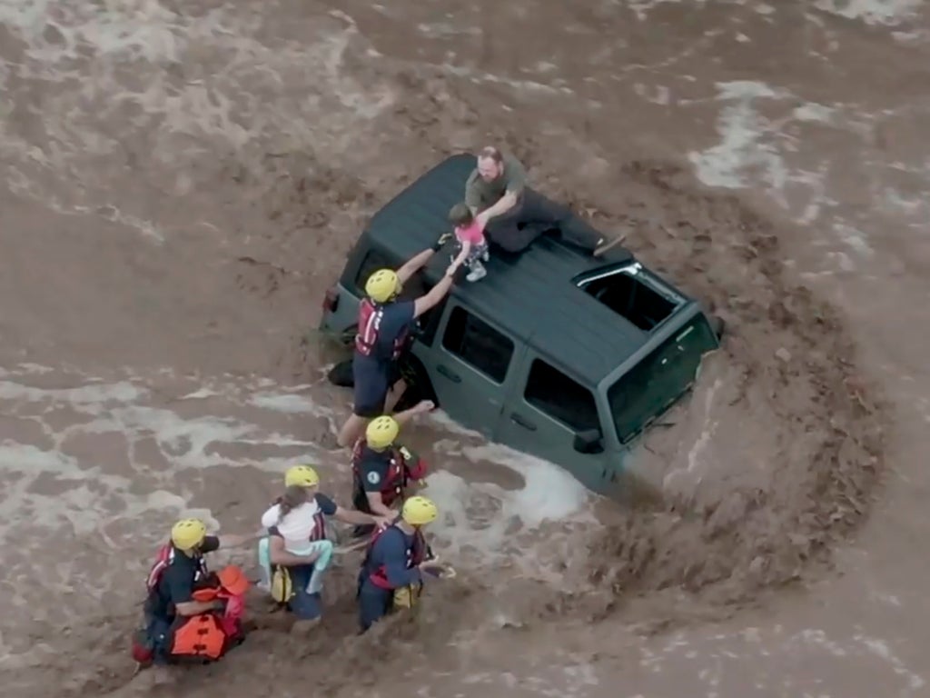Meanwhile, in Missouri, two people had to be rescued from flash flooding in Madison County, having been stranded on top of their vehicle by fast-rising water.