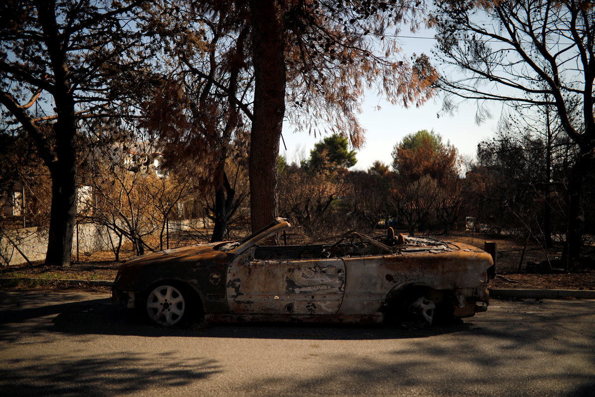A burned car in seen in the village of Neos Voutzas, near Athens, Greece, August 22, 2018. Picture taken August 22, 2018. REUTERS/Alkis Konstantinidis