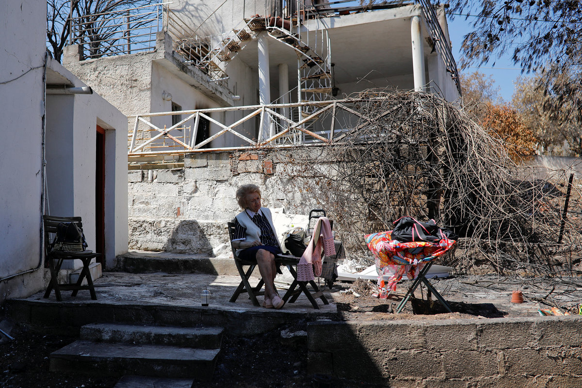 Maria stands at the yard of her destroyed house in the village of Mati, near Athens, Greece, August 22, 2018. Picture taken August 22, 2018. REUTERS/Alkis Konstantinidis