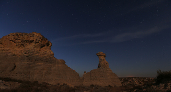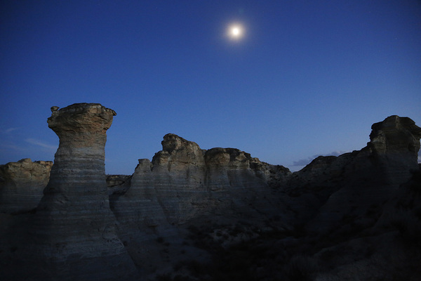 A few minutes after sundown, the light-colored rocks seem to glow in the moonlight.