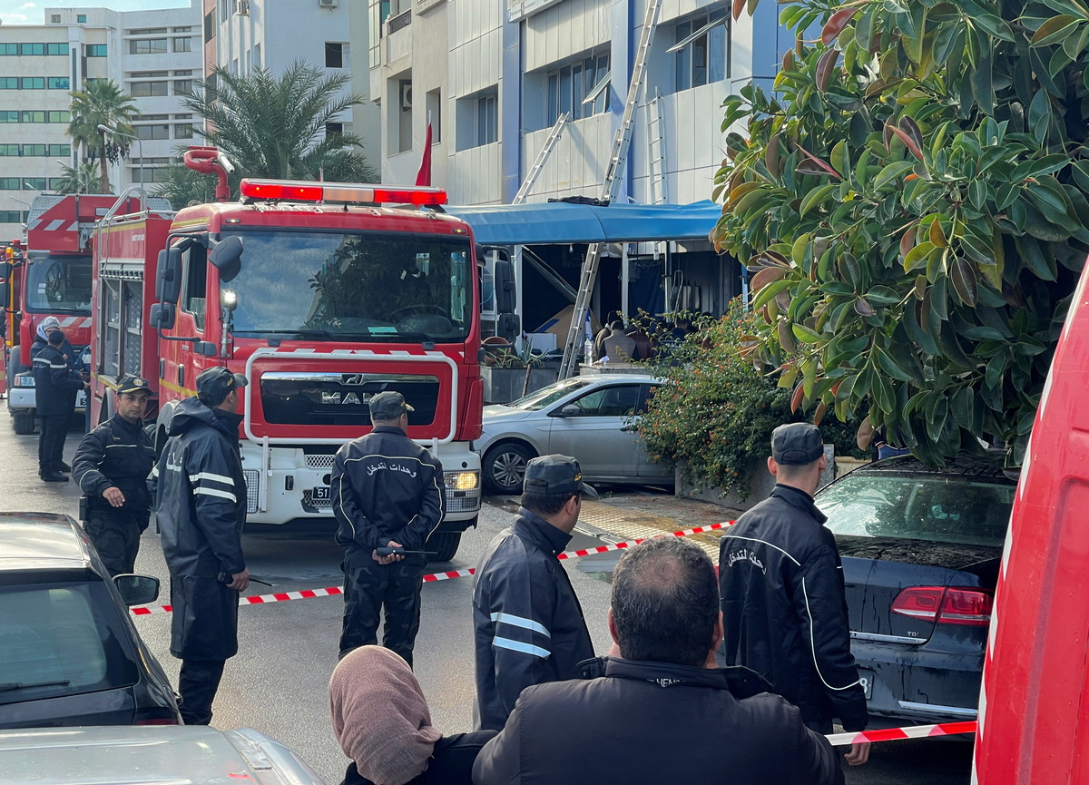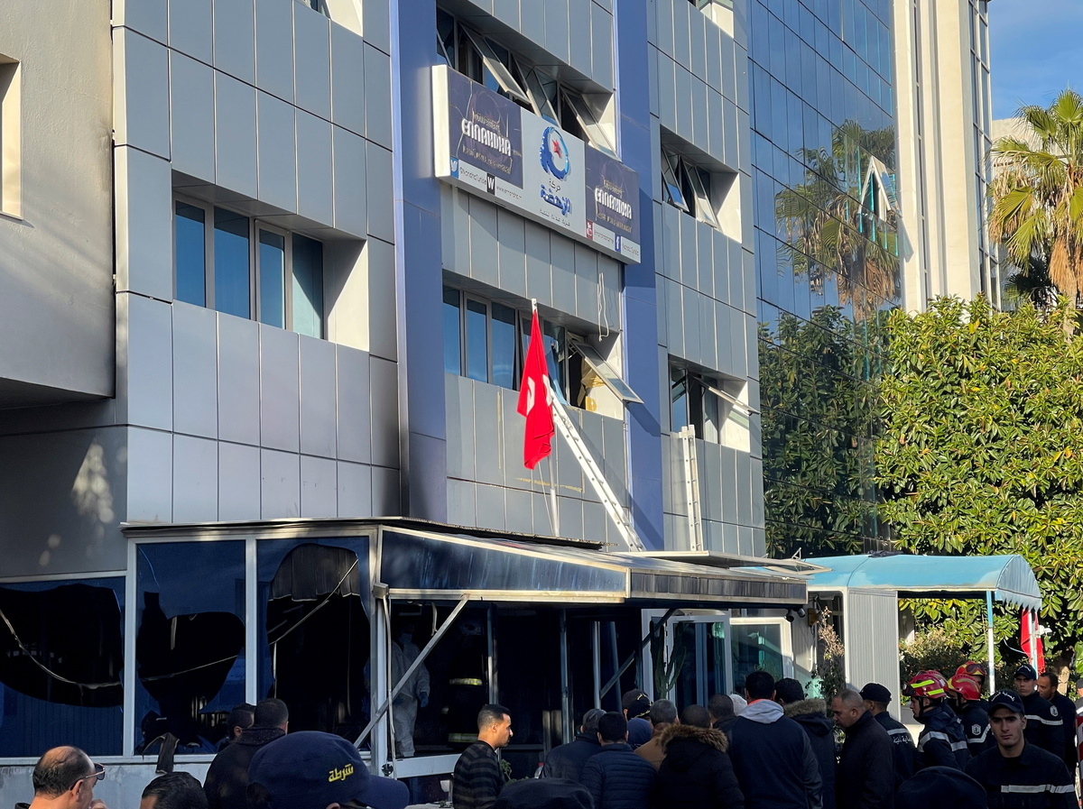 Two senior party officials were among the injured in the blaze at the building in the capital, Tunis, according to Ennahda members and witnesses.