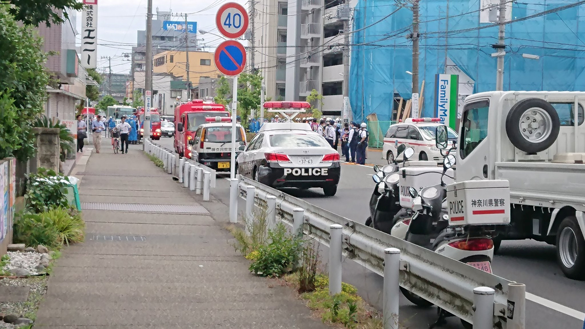 TV footage showed scores of police officers and emergency vehicles at the scene, with large areas cordoned off. A witness told NHK he saw people lying on the ground covered in blood and a police officer was hosing down the sidewalk.