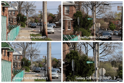 I’ve cropped in 100 percent on both a 12-megapixel photo and a 48-megapixel image to showcase how much more detail you can get. Also included is a 100 percent crop for a 12-megapixel pic taken with the S20 Ultra and a 108-megapixel photo.