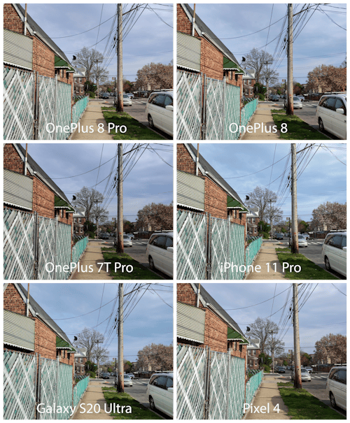 In the below 6-way comparison, it's clear OnePlus has improved color accuracy, contrast, and highlights. See the shadows on the grass and trees and the wider dynamic range in the sky.