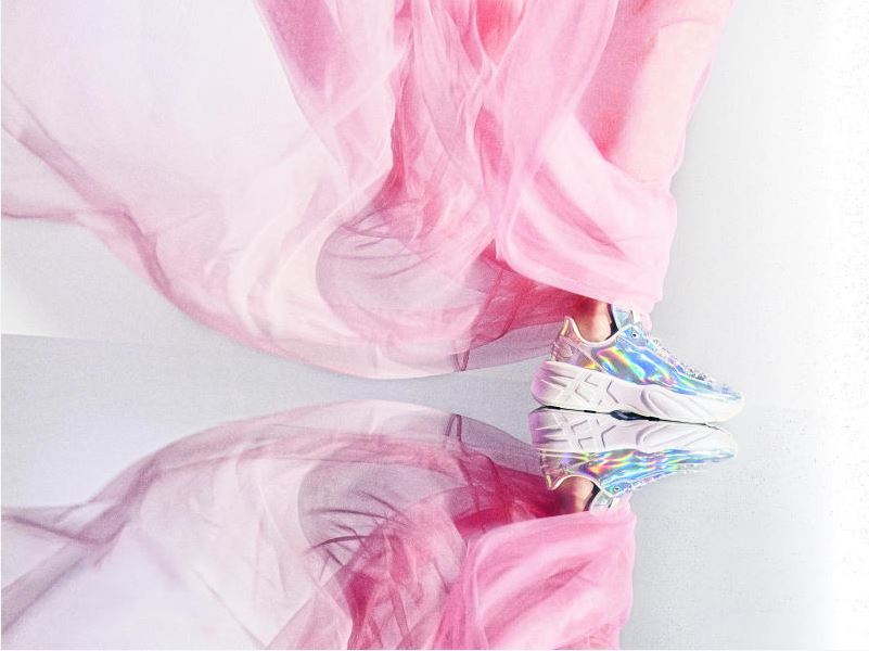 The model adopted for this collaboration is the P-TRAINER PRZM from the Onitsuka Tiger Contemporary Collection. The prismatic colours, reminiscent of the glass slipper, are used on the entire upper of the sneaker to create a mirror-like glossy effect. The design complements both casual and dressy styling for any occasion.